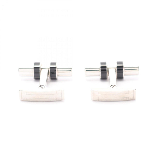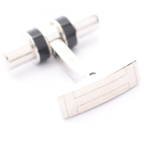 Hermes Hermès Tube H Cufflinks, Metal, Men\'s, Silver/Black