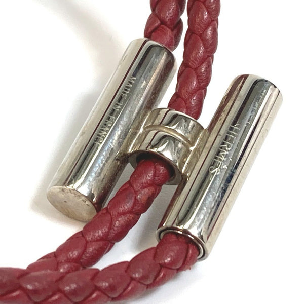 HERMES Tourni Tresse Braided Leather Bracelet with H Clasp, Unisex, Red-Brown