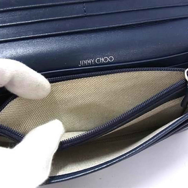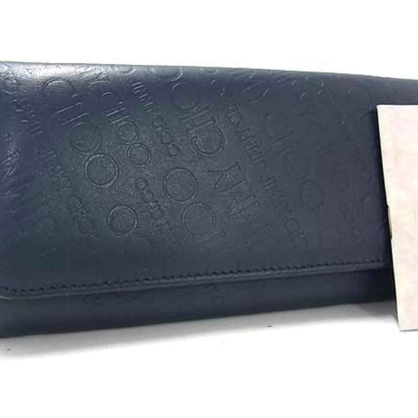 JIMMY CHOO NINO long wallet with flap, navy embossed leather, for men and women.