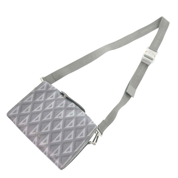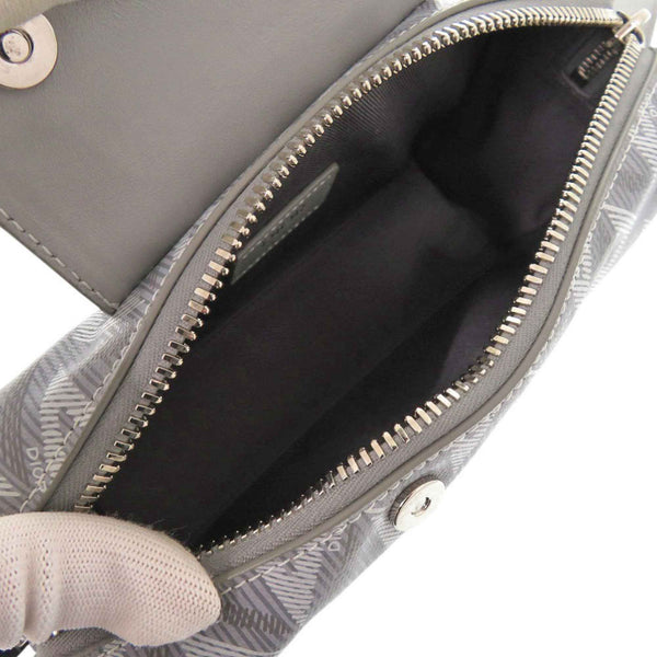Like new Christian Dior Rango 22 Leather/PVC/CD Diamond Canvas Gray Shoulder Bag 1211