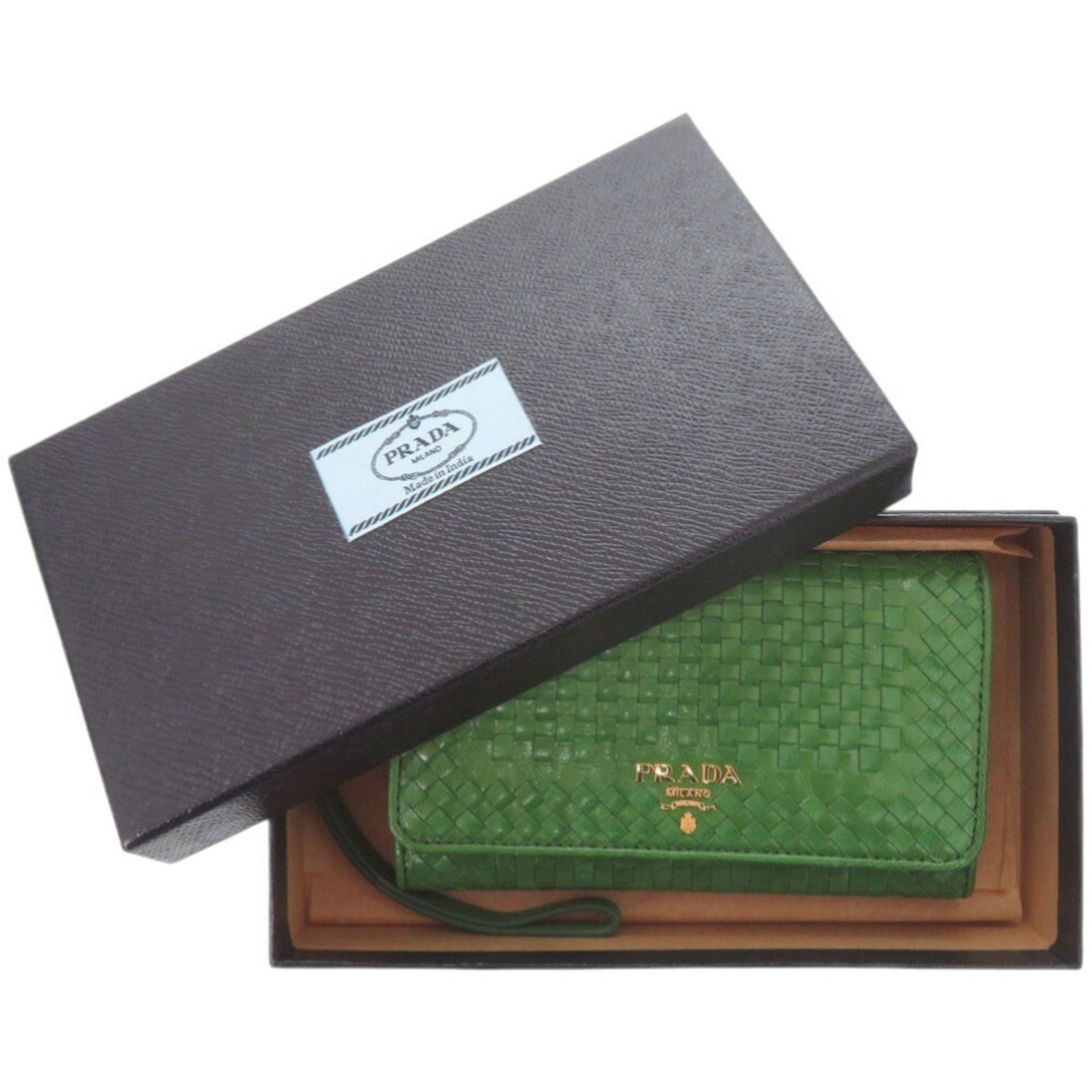 Like new Prada 1M1438 goat leather green bifold wallet, green, 0777PRADA