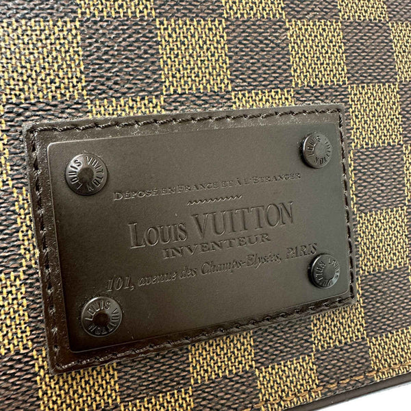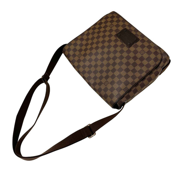 Louis Vuitton Damier Canvas Brooklyn MM Shoulder Bag, Men\'s, Ebene, N51211, Brown, A4 Size, Large Capacity