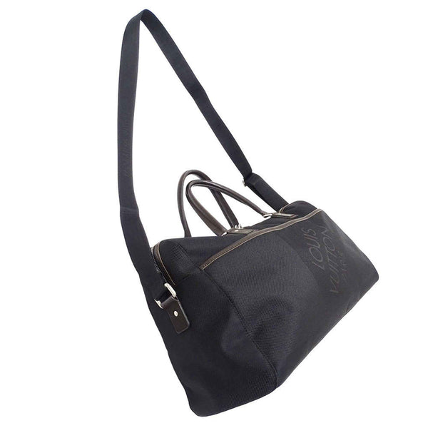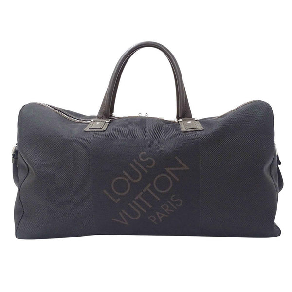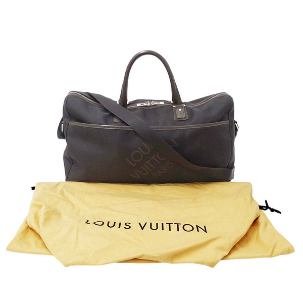 Louis Vuitton Men\'s Boston Bag, Damier Geant Canvas, Albatross Pattern, Black and Brown, M93601, Large Capacity, Travel Perfect for Business Trips