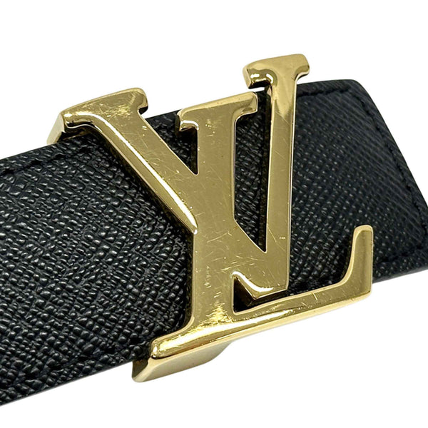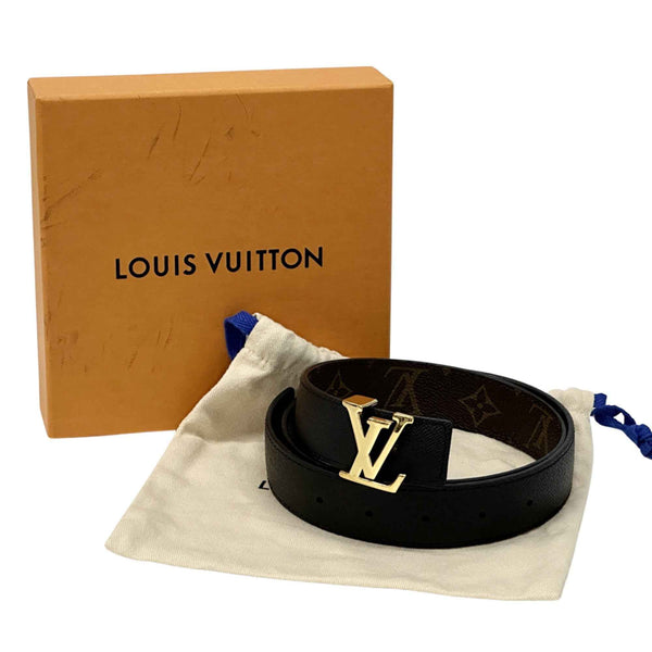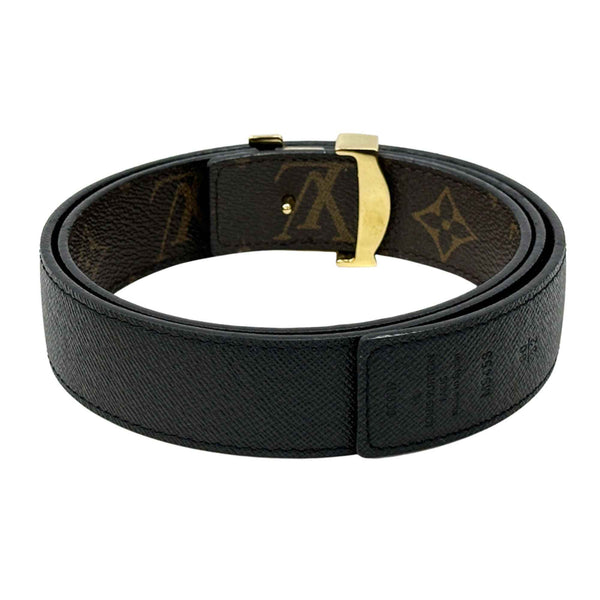 Louis Vuitton Monogram Men\'s Belt, Canvas, Santur Leather with LV Initials, Black/Brown, Gold Hardware, M9453, Reversible