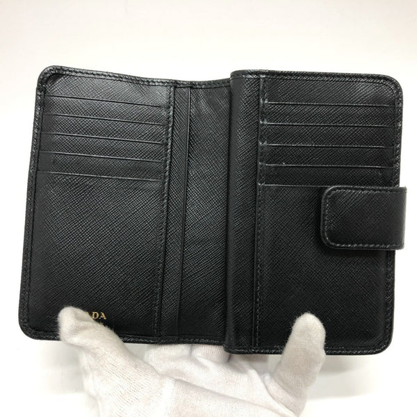 PRADA 1ML225 Triangle Plate Bifold Wallet in Nylon/Leather, Black