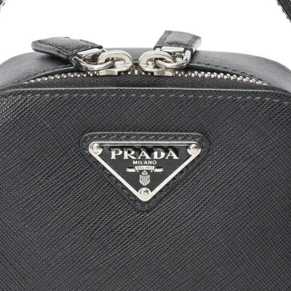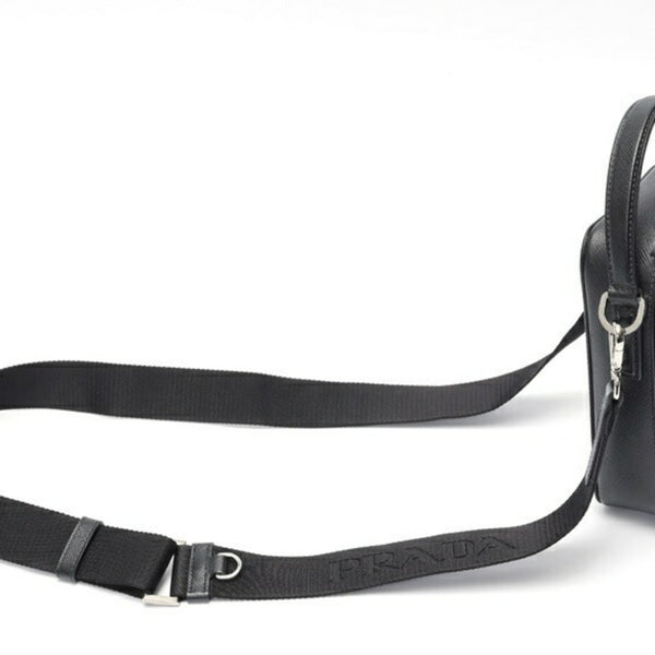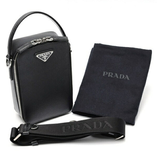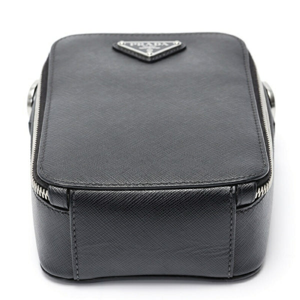 PRADA Brick Saffiano Leather Bag Shoulder Pouch 2VH067 Black S-158957