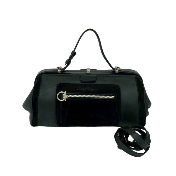 Salvatore Ferragamo Gancini hardware leather 2-way handbag/shoulder bag, black, 07511