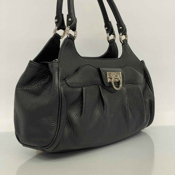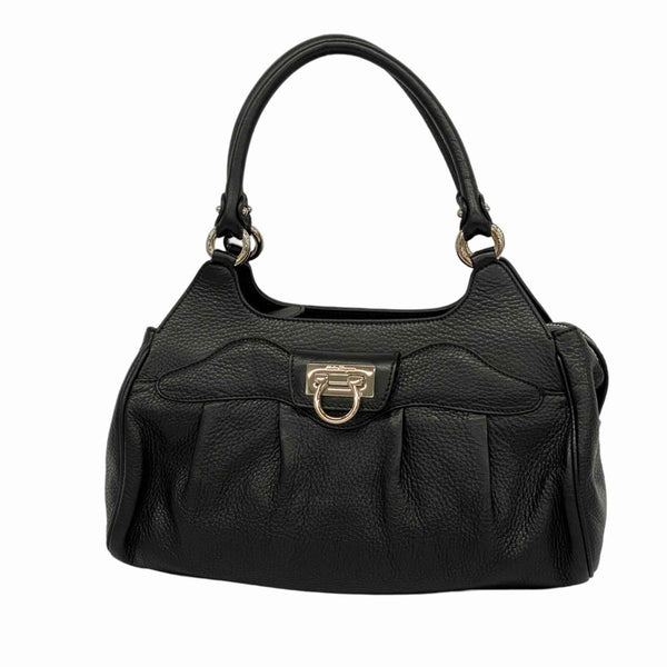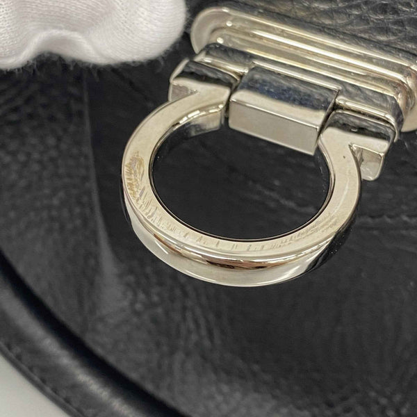 Salvatore Ferragamo Gancini Leather Handbag, Black, Women\'s