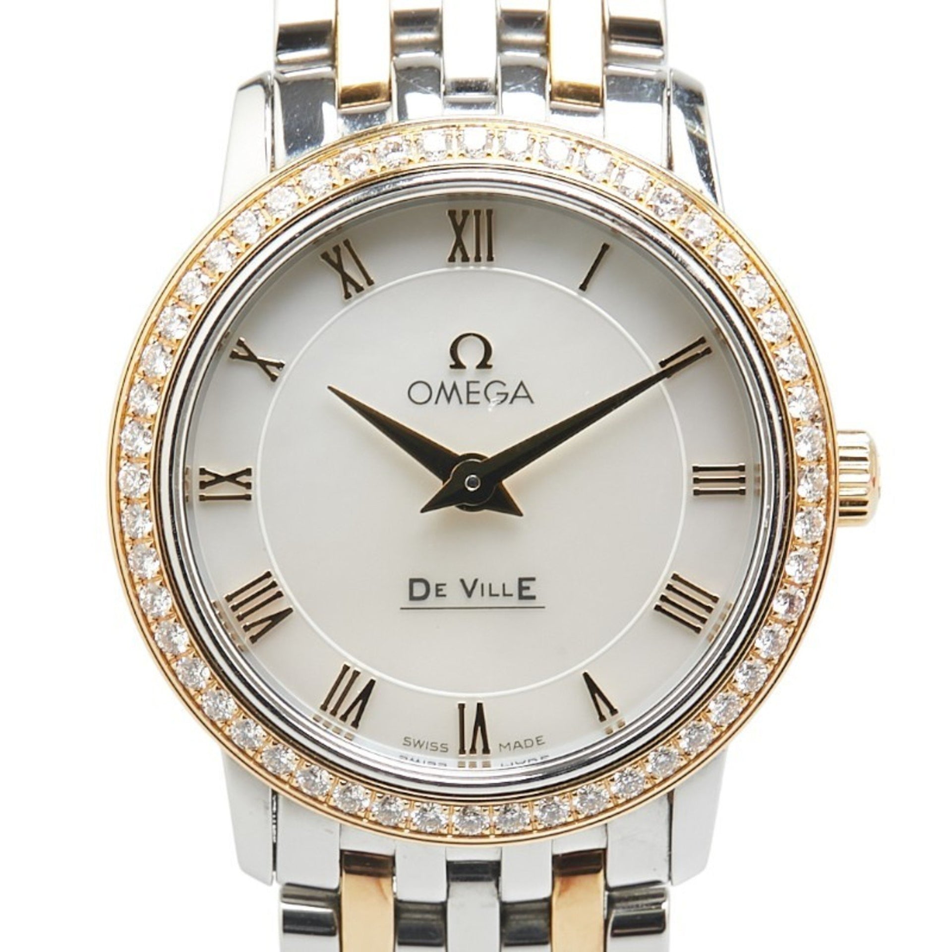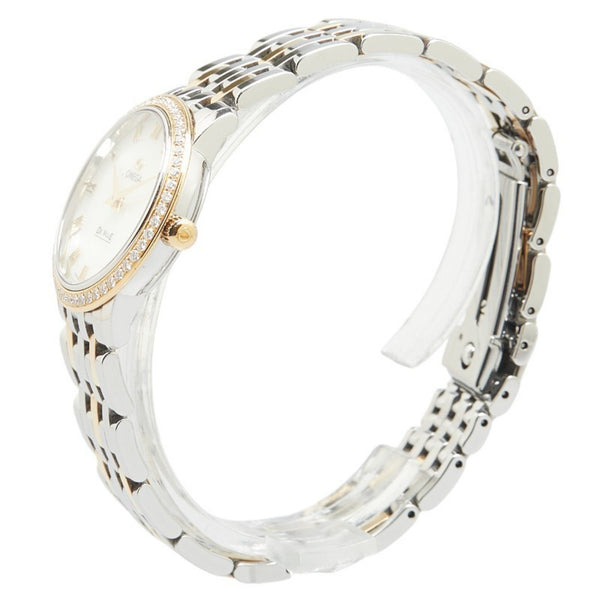 OMEGA De Ville Prestige Diamond Bezel Watch 413.25.27.60.05.001 Quartz White Dial Stainless Steel 18K Yellow Gold Women\'s