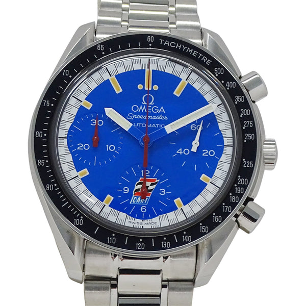OMEGA Speedmaster Racing Michael Schumacher 3510.80 Men\'s Chronograph Automatic Watch in Stainless Steel with Silver and Blue Polished Finish