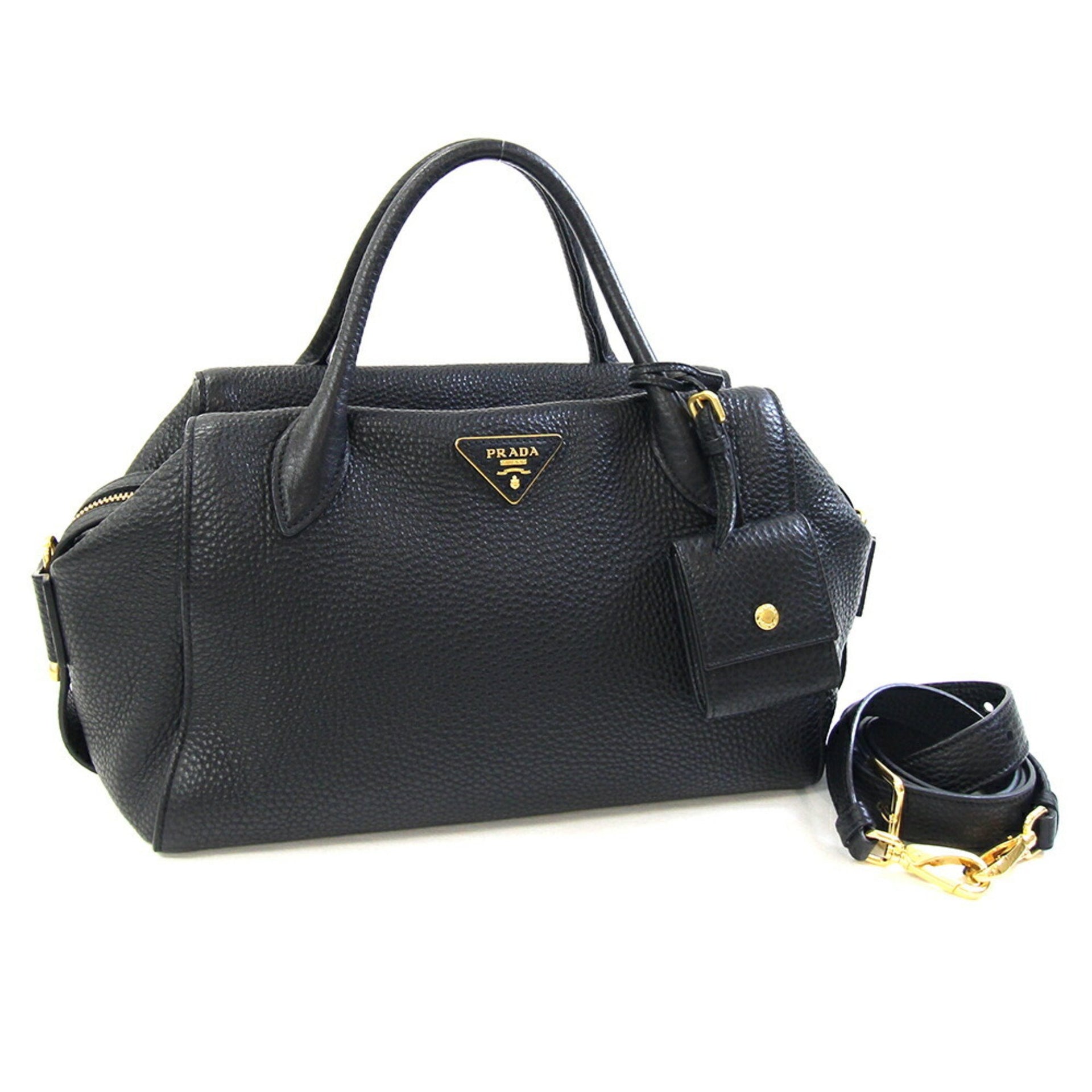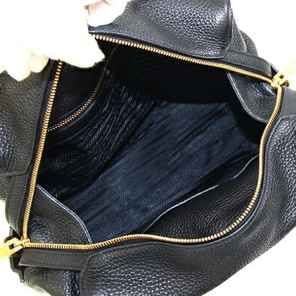 Prada Handbag 1BB031 Black Leather Mini Boston Shoulder Bag for Women