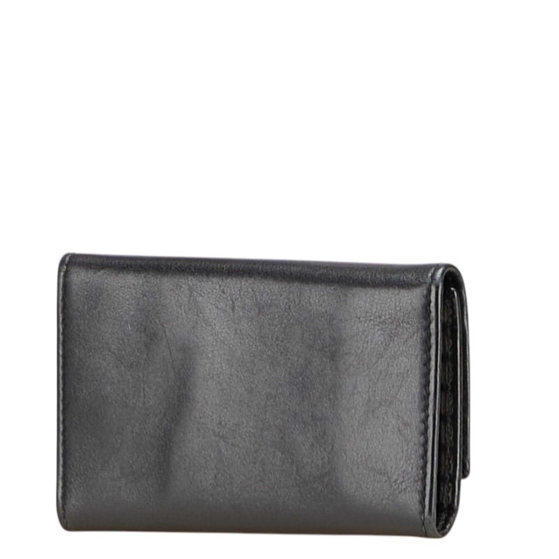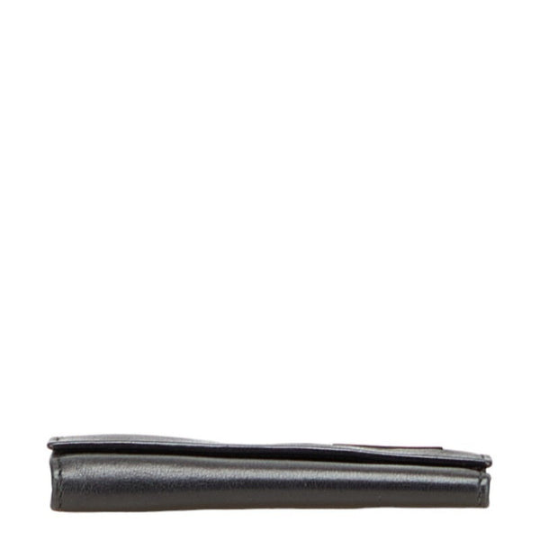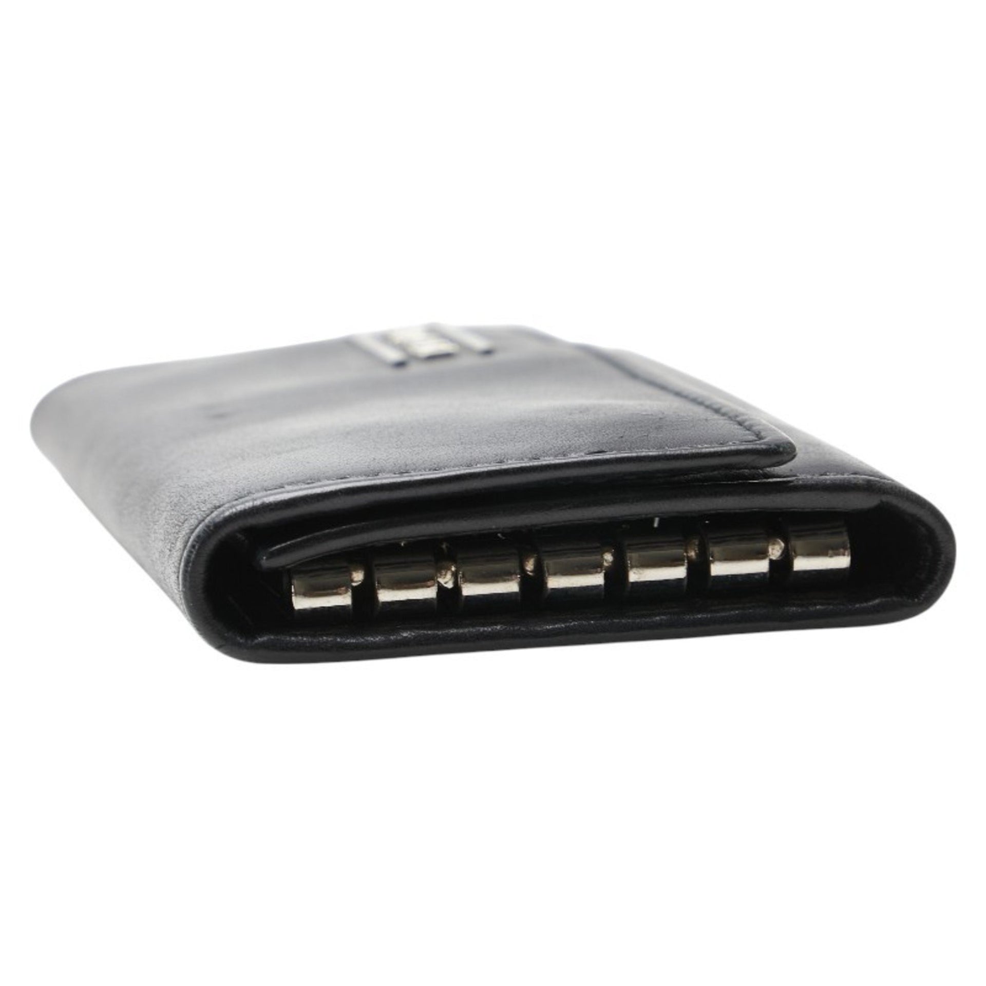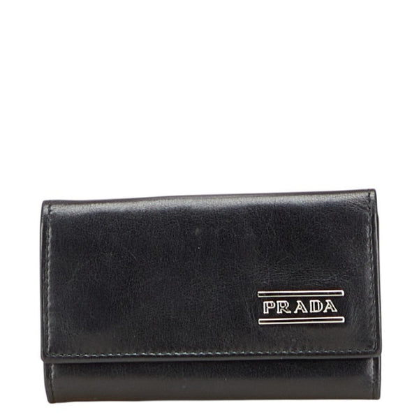 Prada Logo Metal 6-Ring Key Case, Black Leather, Women\'s, PRADA