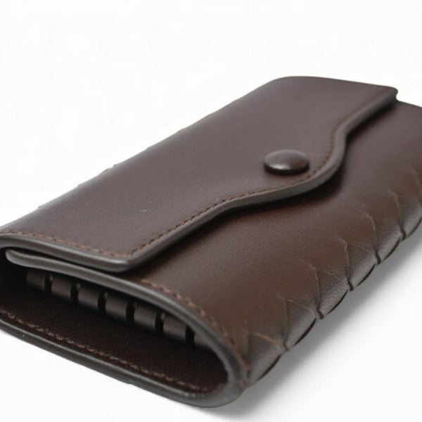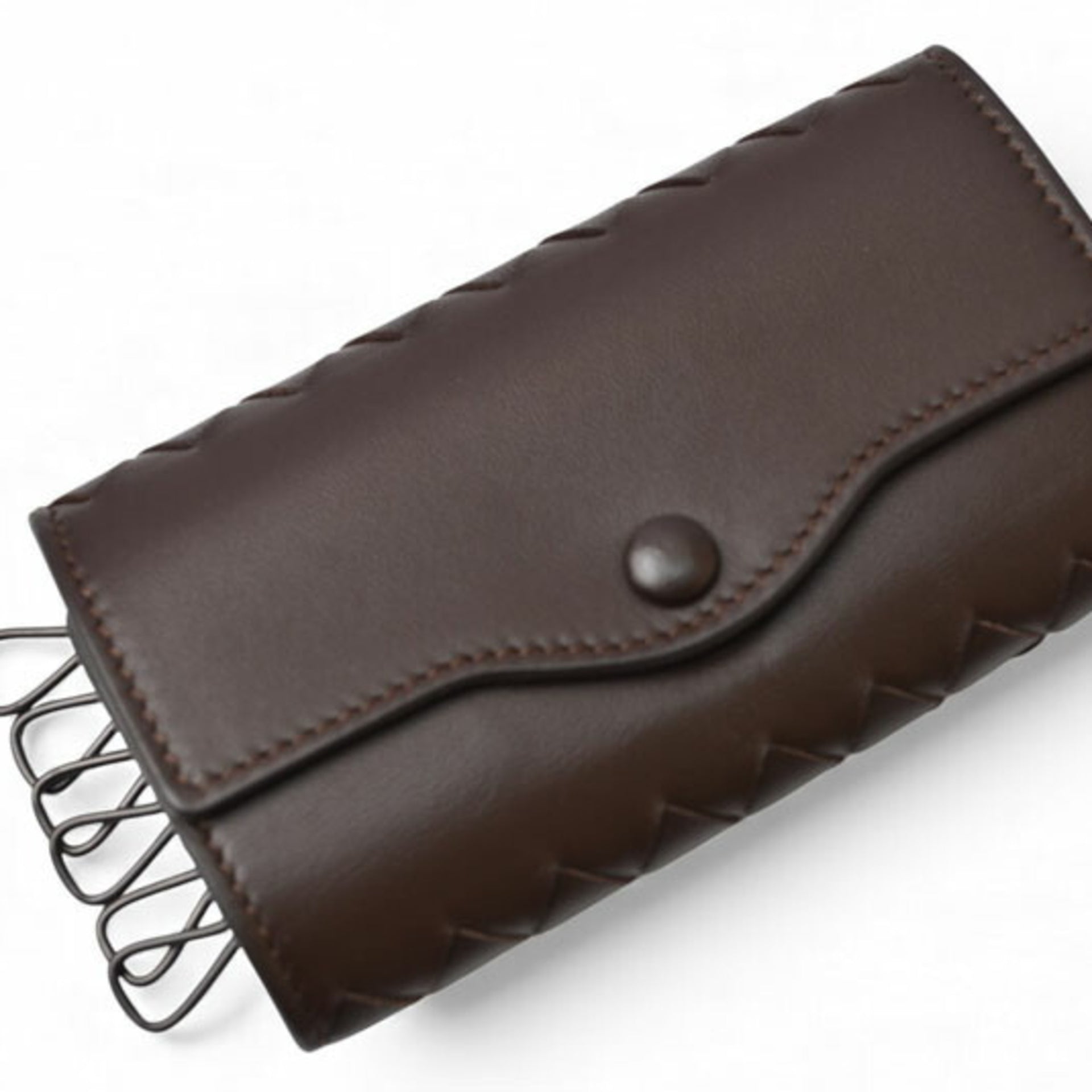 Bottega Veneta 6-ring key case in dark brown nappa intrecciato