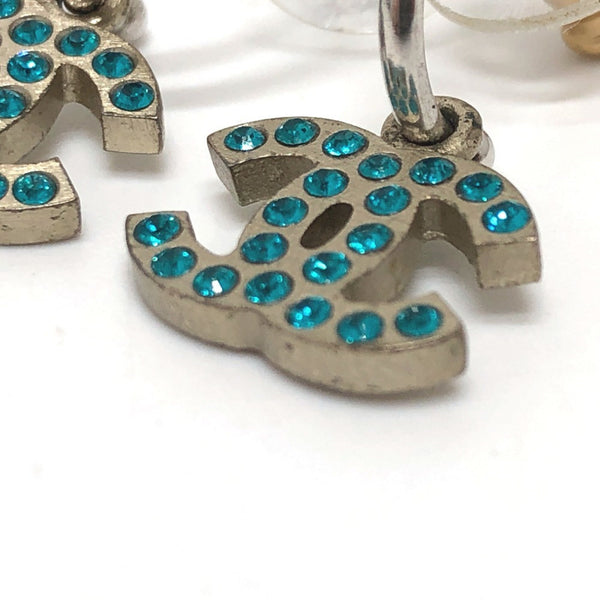 CHANEL 06P Coco Mark Rhinestone Earrings, Metal, Women\'s, Silver