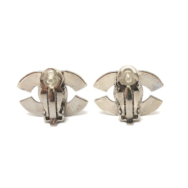 CHANEL CC Coco Mark Rhinestone Earrings A12V, Metal, Women\'s, Silver