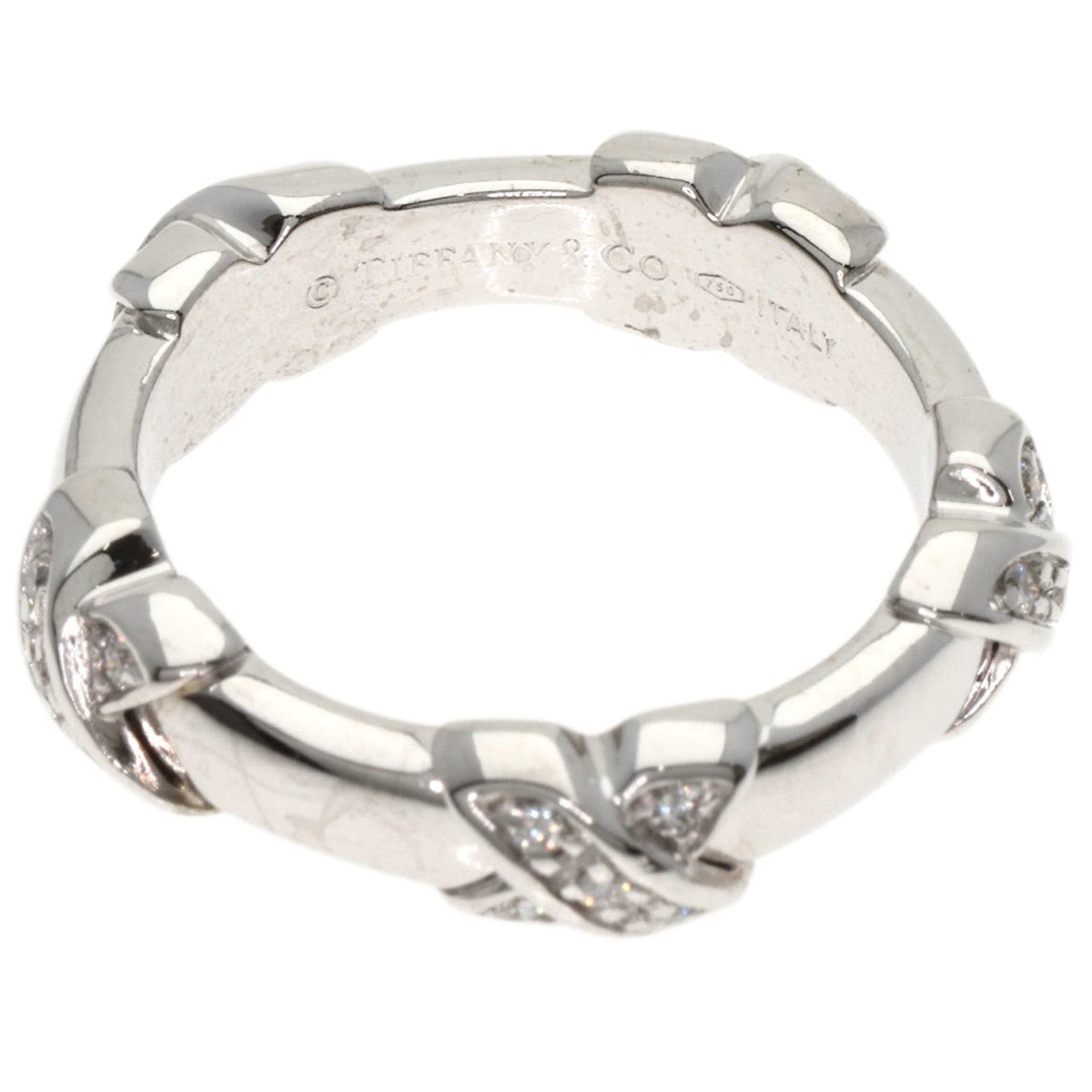 Tiffany & Co. Signature Cross Diamond Ring in 18K White Gold for Women.