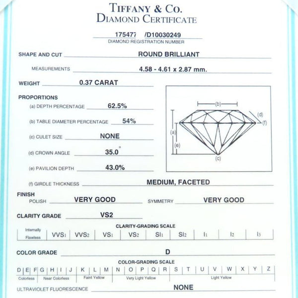 TIFFANY&Co. Tiffany Solitaire Ring, 0.37ct Diamond, D.VS2, Pt950 Platinum, 293990