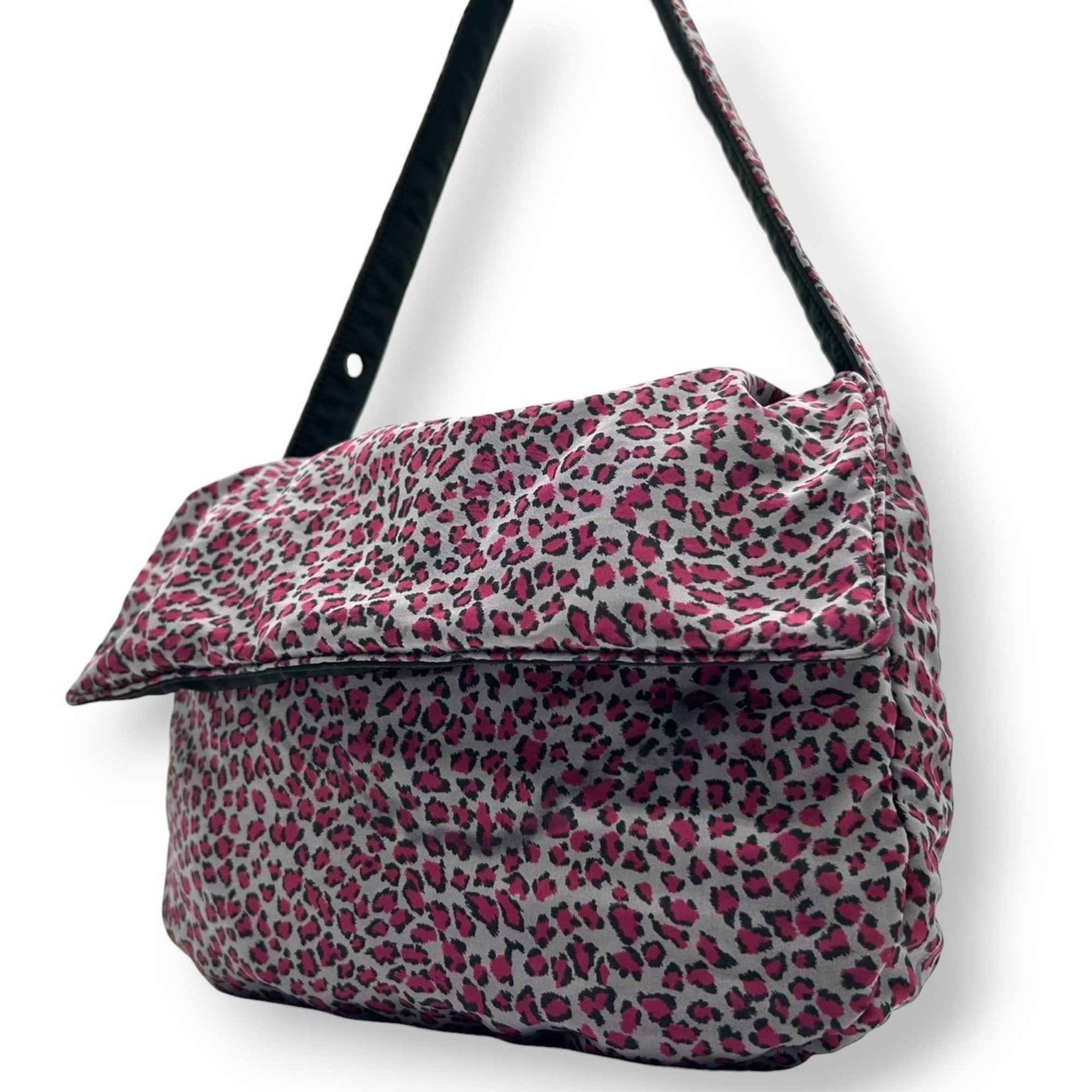 Bottega Veneta One-Shoulder Flap Nylon Leopard Print Shoulder Bag in Pink and Gray, Made Italy, Women\'s, Unique Design, D3