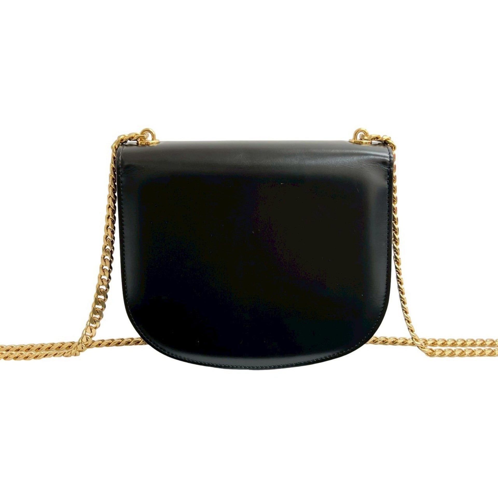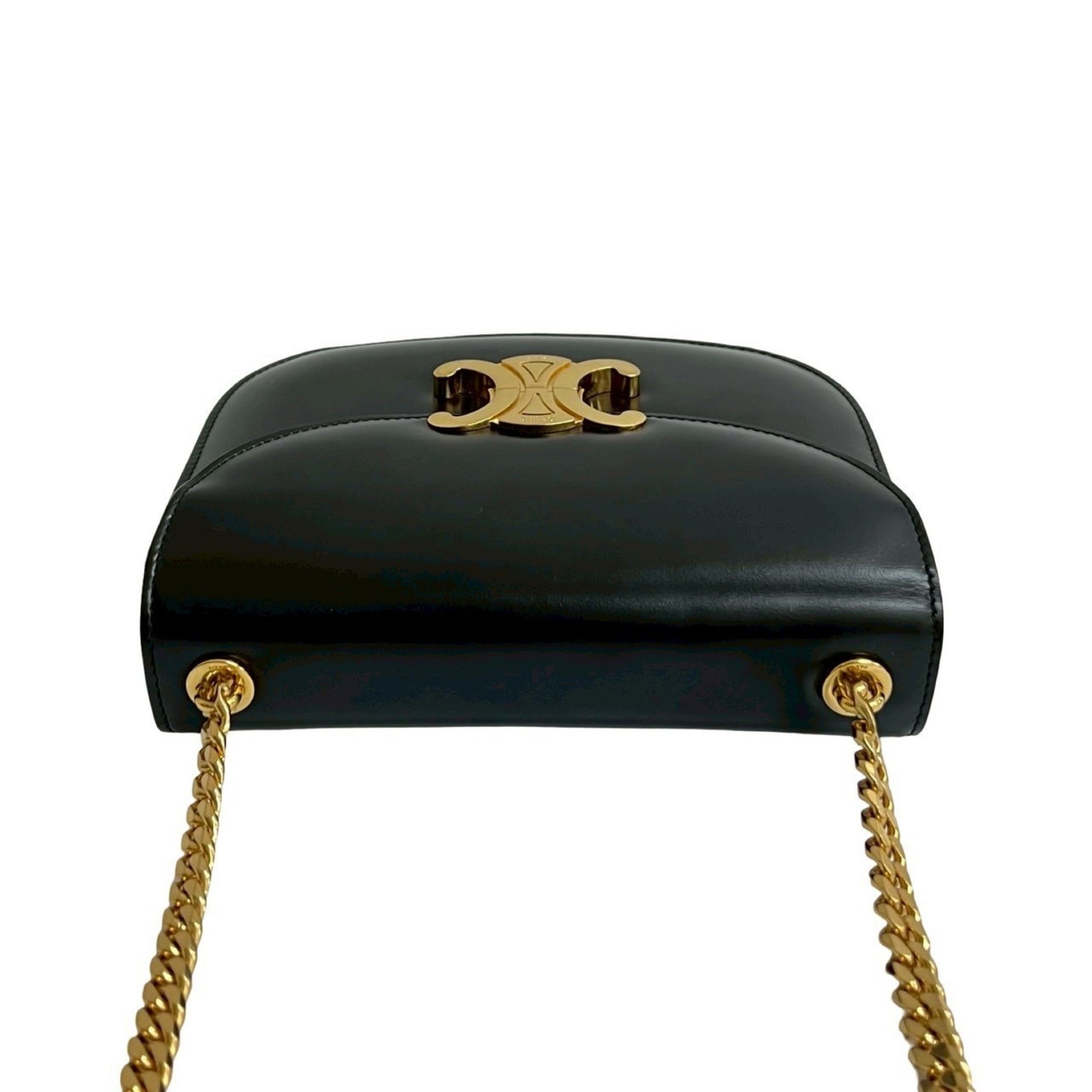 CELINE Teen Chain Besas Triomphe Logo Calf Leather Shoulder Bag Pochette Black 30423