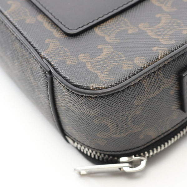 Celine Triomphe Shoulder Bag, Coated Canvas and Leather, Women's, Black Brown, 114902