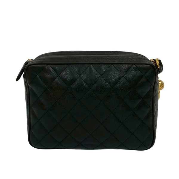 CHANEL Matelasse Coco Mark Caviar Leather Shoulder Bag Pochette Black 38893