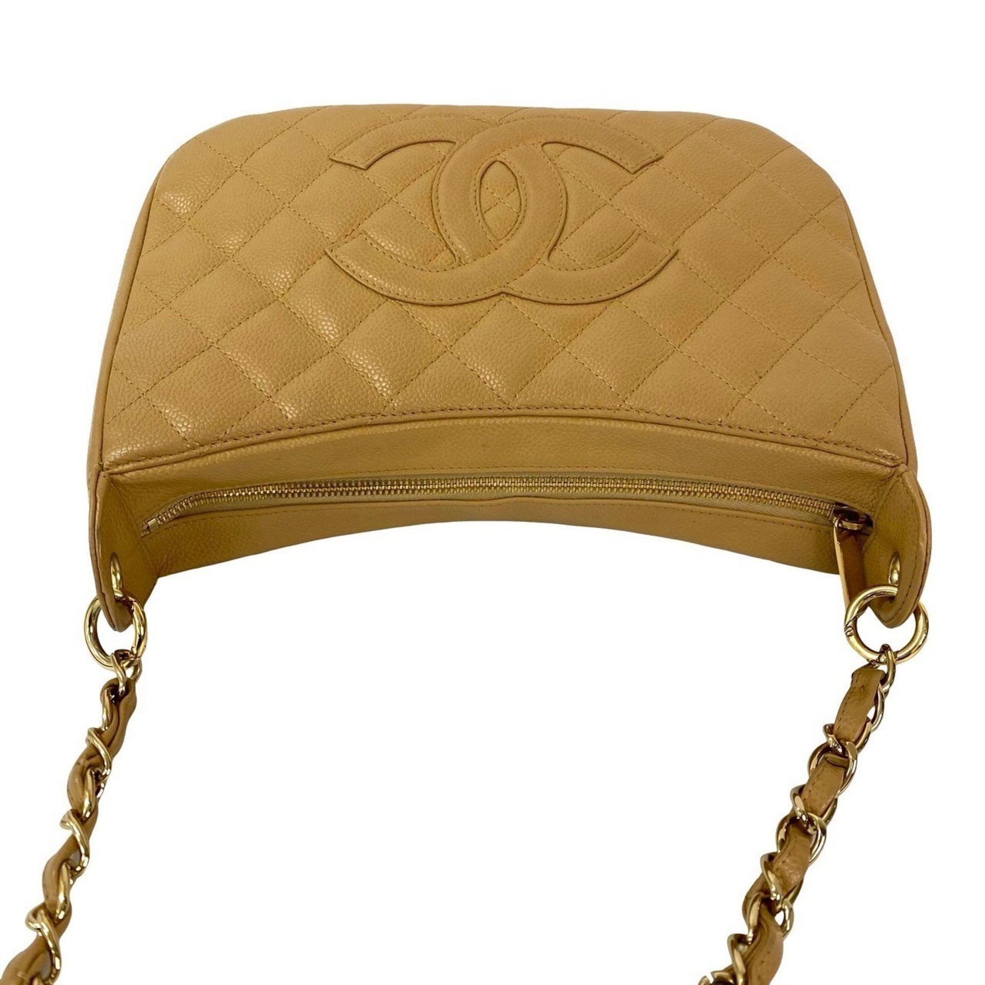 CHANEL Matelasse Coco Mark Caviar Skin Semi-One Shoulder Bag, Beige, 79718