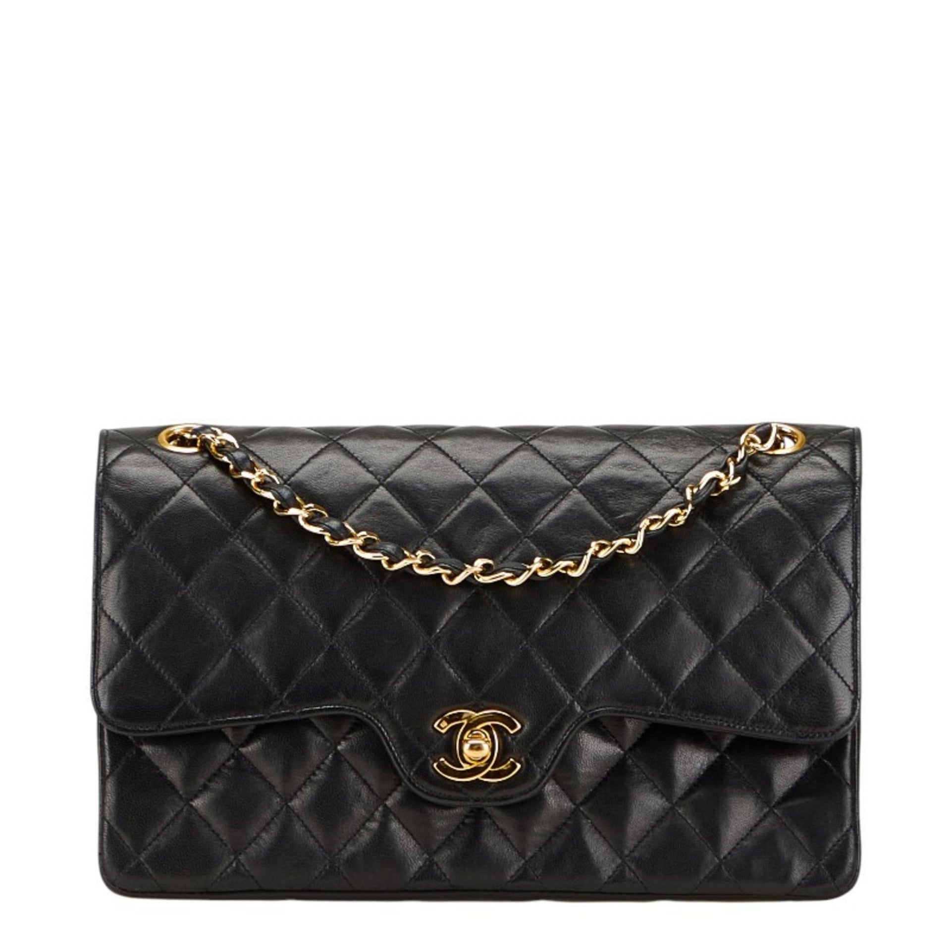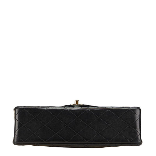 CHANEL Matelasse Coco Mark Double Flap Chain Shoulder Bag in Black Lambskin for Women