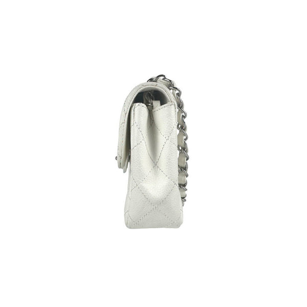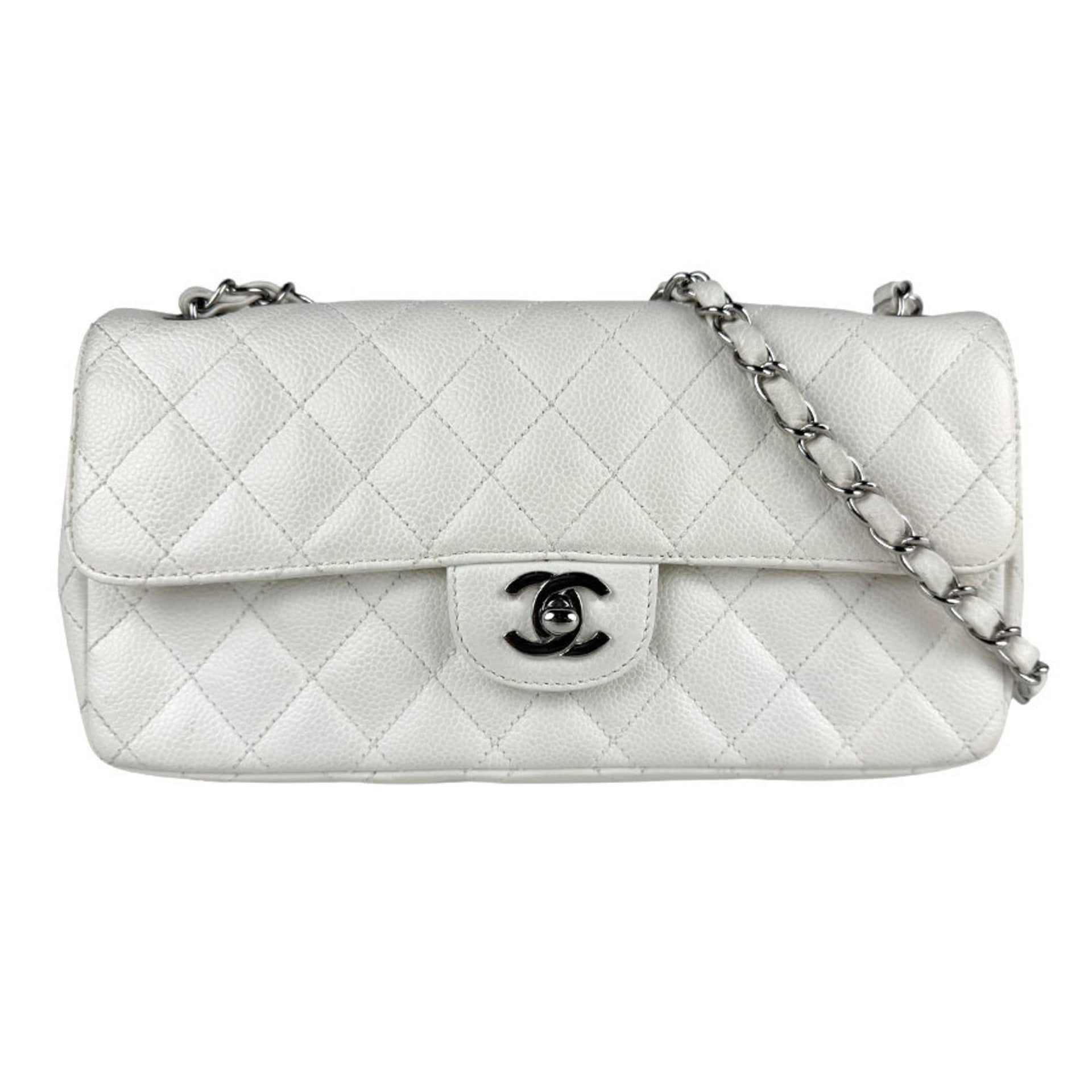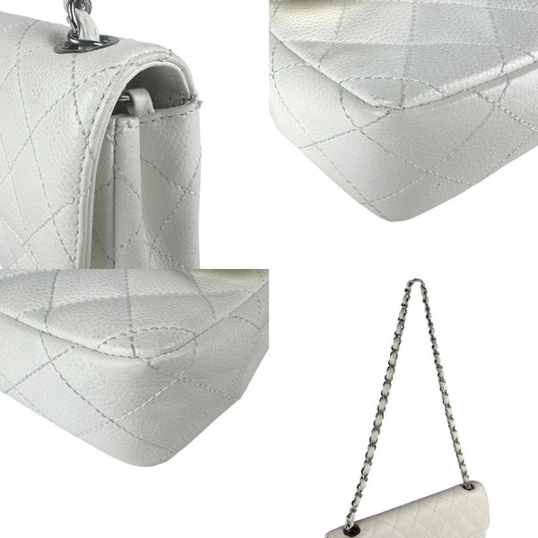 CHANEL Matelasse Shoulder Bag in Caviar Leather with Metallic, Off-White and Silver, Women\'s, z7173