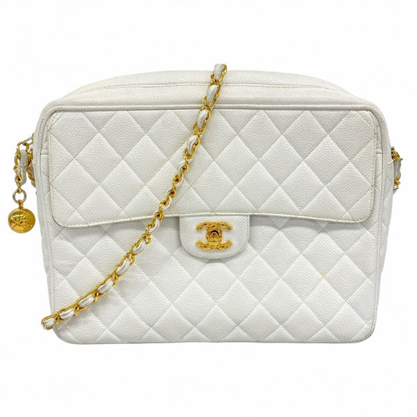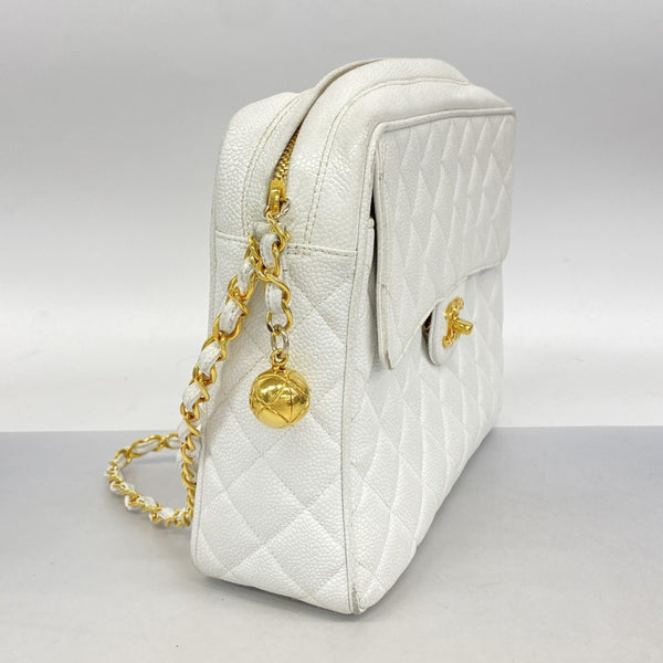 Chanel Matelasse Shoulder Bag with Chain Bag, Caviar Skin, White, Women\'s