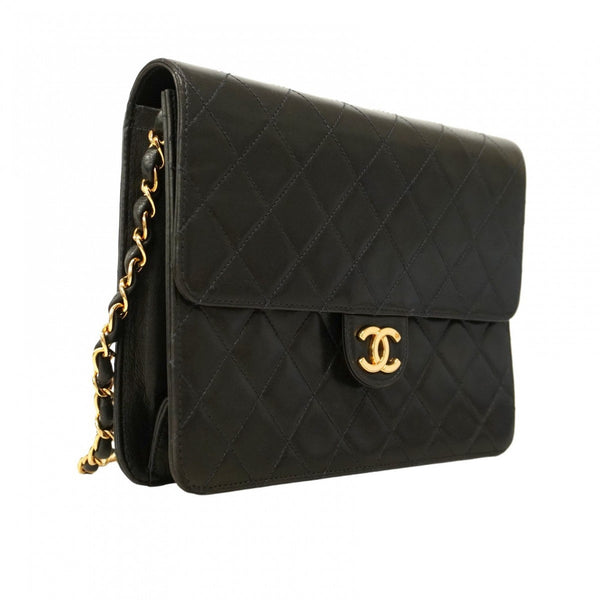 Chanel Matelasse Shoulder Bag with Chain Bag, Lambskin, Black, Women\'s