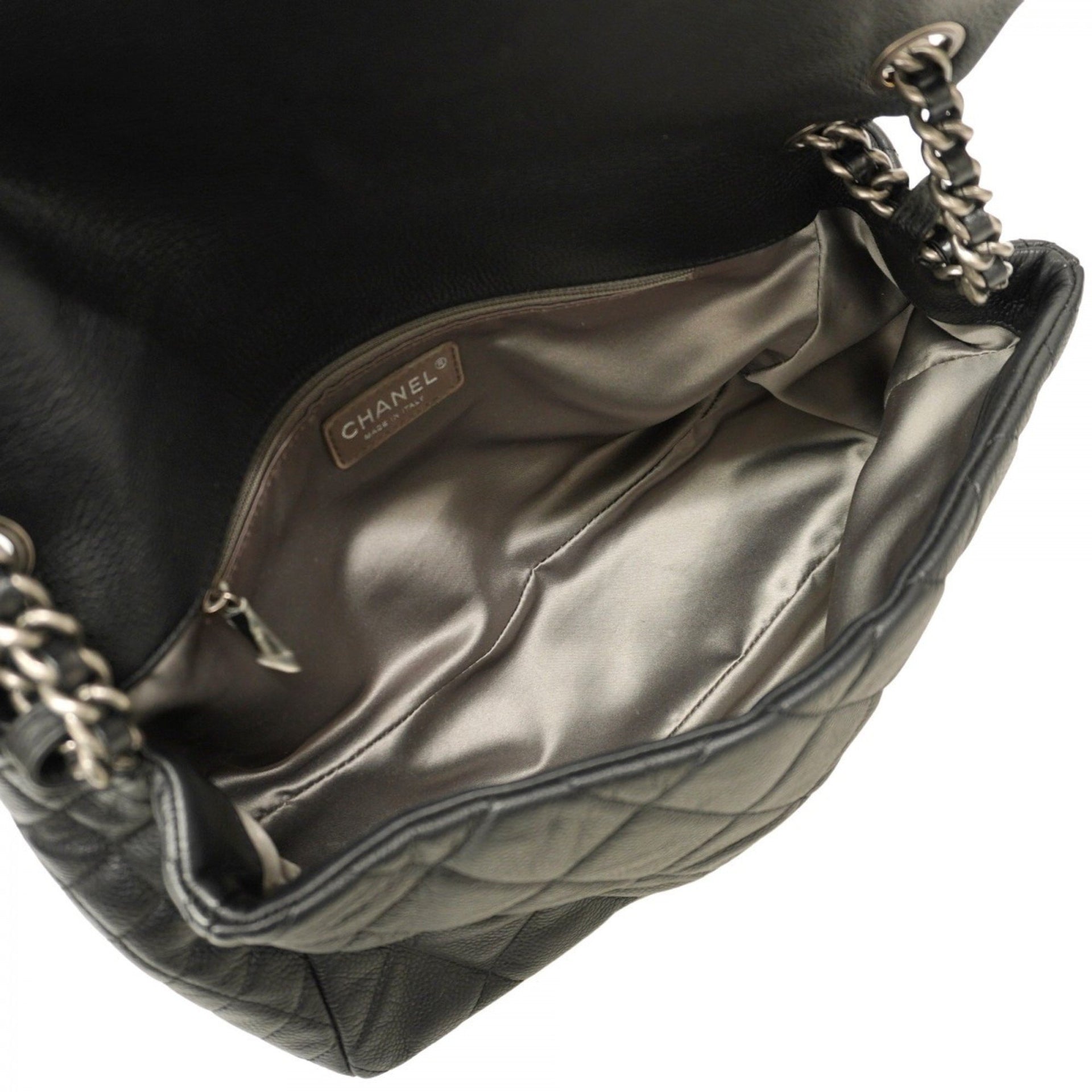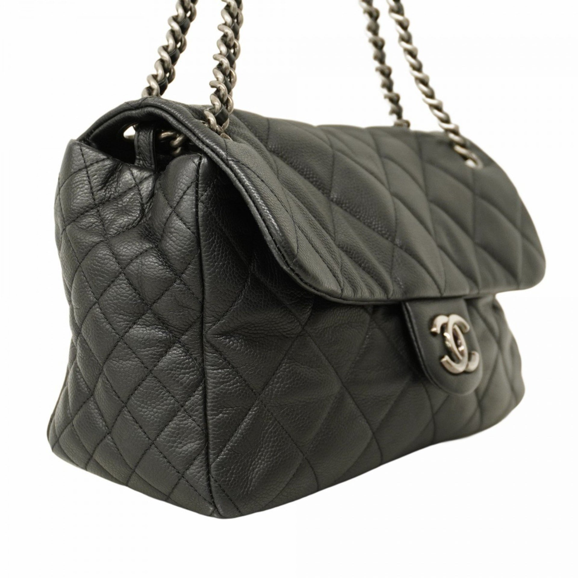 Chanel Matelasse Shoulder Bag with Chain, Caviar Skin, Black, Women\'s