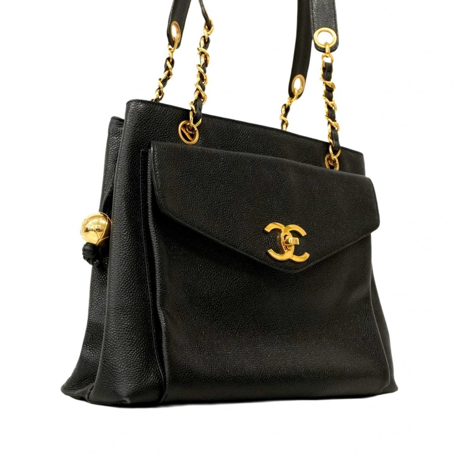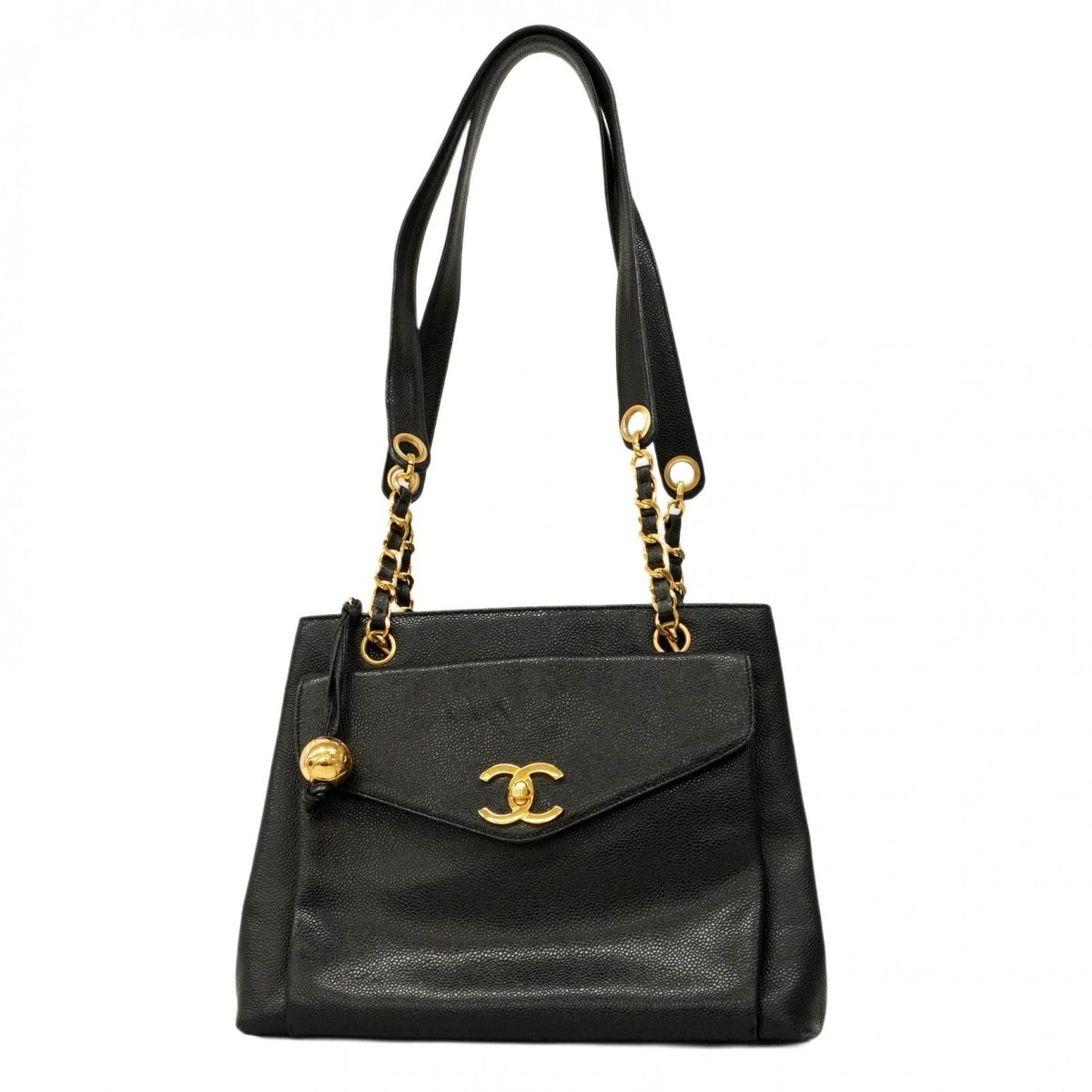Chanel Shoulder Bag Chain Caviar Skin Black Women\'s