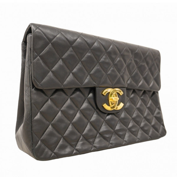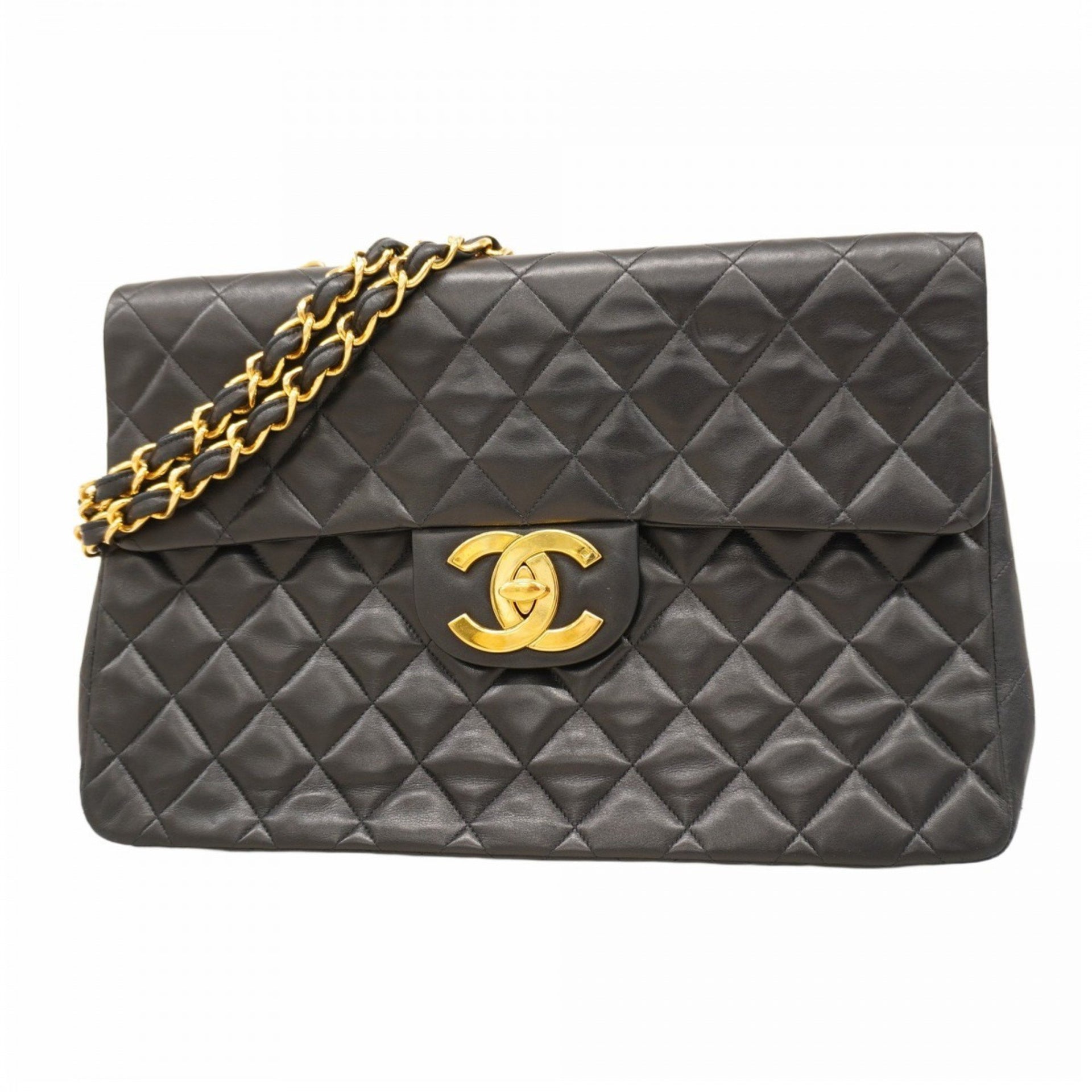 Chanel Shoulder Bag, Large Matelasse, Double Chain, Lambskin, Black, Women\'s