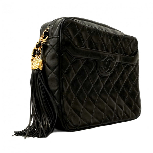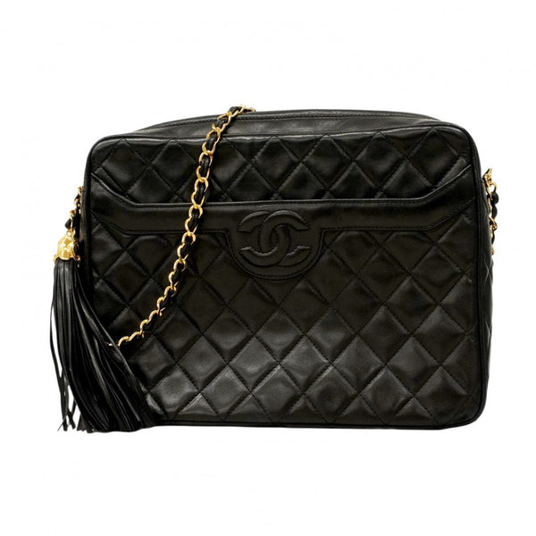 Chanel Shoulder Bag with Matelasse Chain Bag, Lambskin, Black, Women\'s