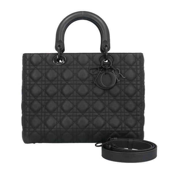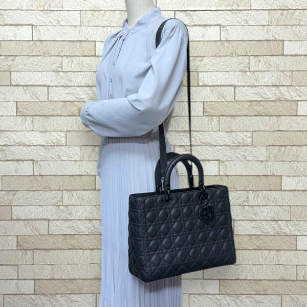 Christian Dior Dior Lady Large Cannage Shoulder Bag Leather M0566SLOIM989 Black Women\'s 2way