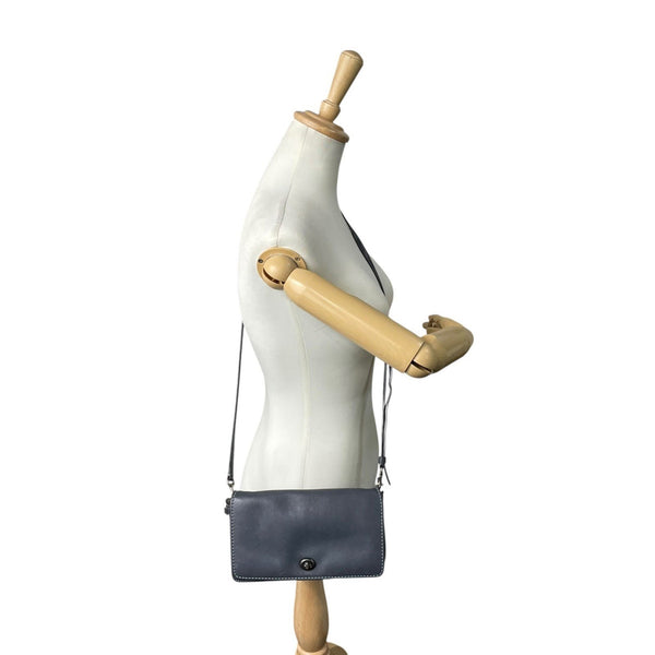 COACH Shoulder Bag, Navy Blue Leather, Black Hardware, Turn Lock, Dinky Mini Wallet Crossbody Women\'s, C5