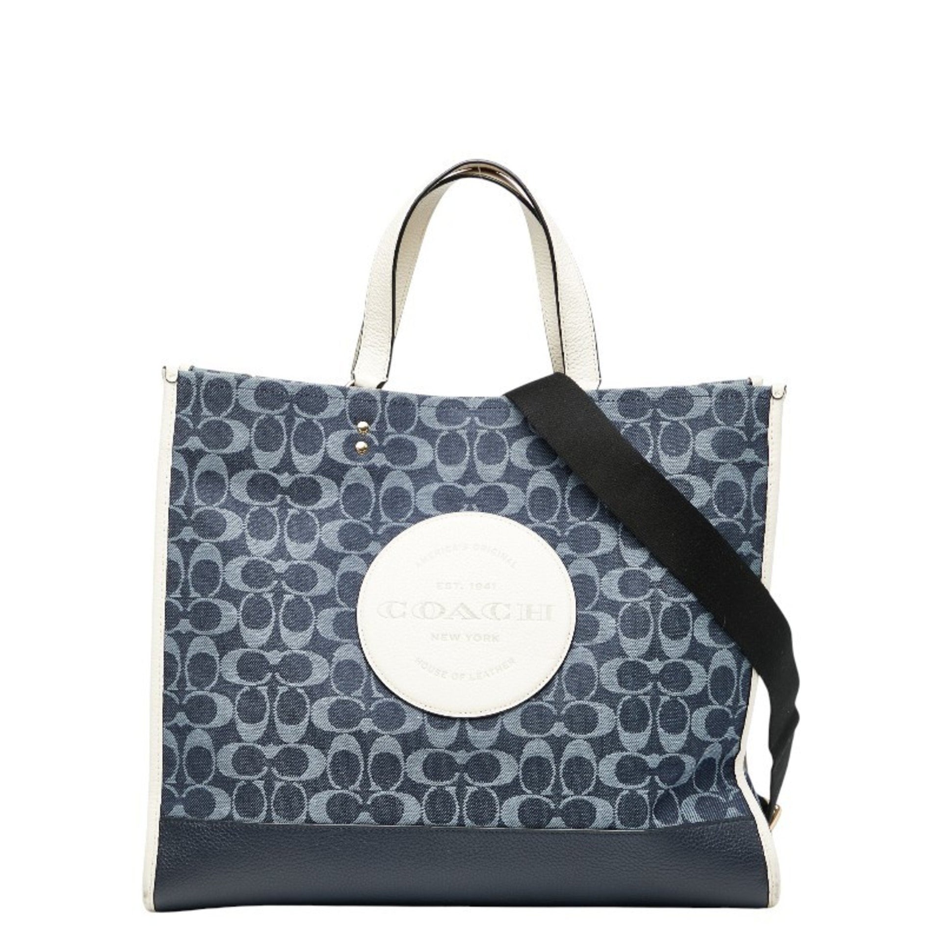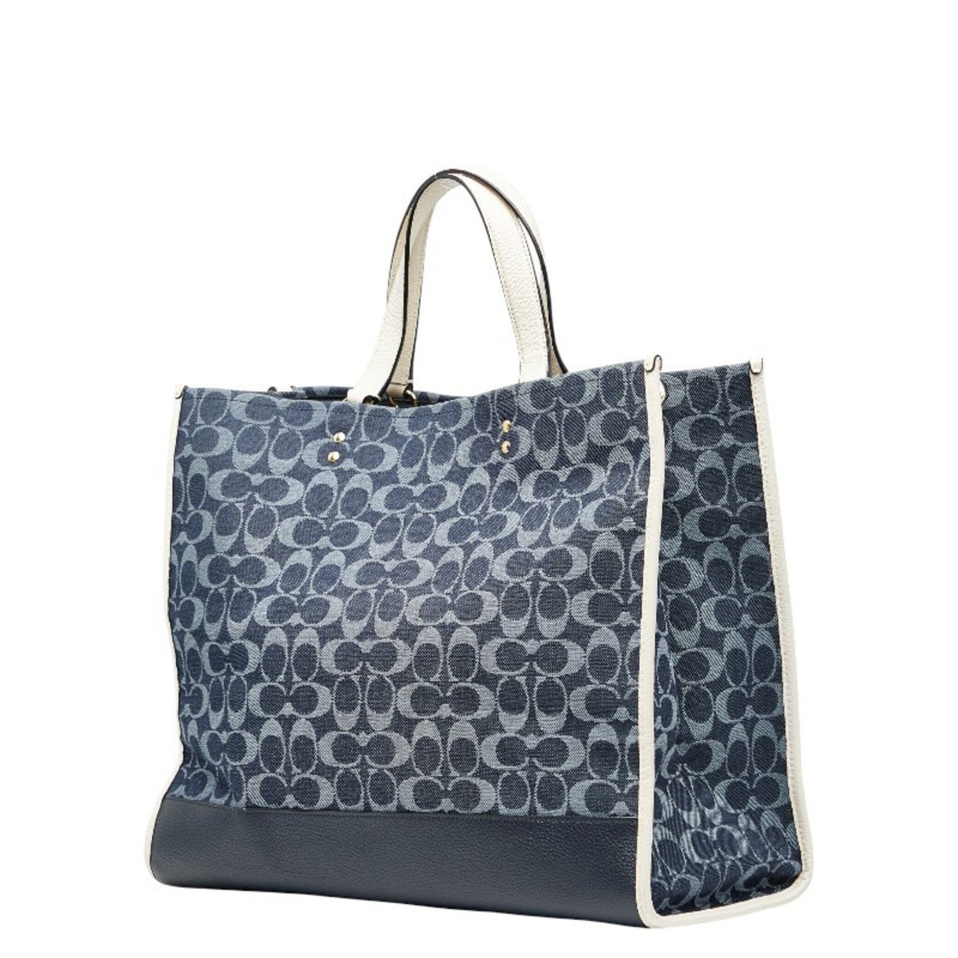Coach Signature Dempsey Tote Bag/Shoulder Bag, 2-Way, C2827, Blue, White, Denim, Leather, Women\'s, COACH
