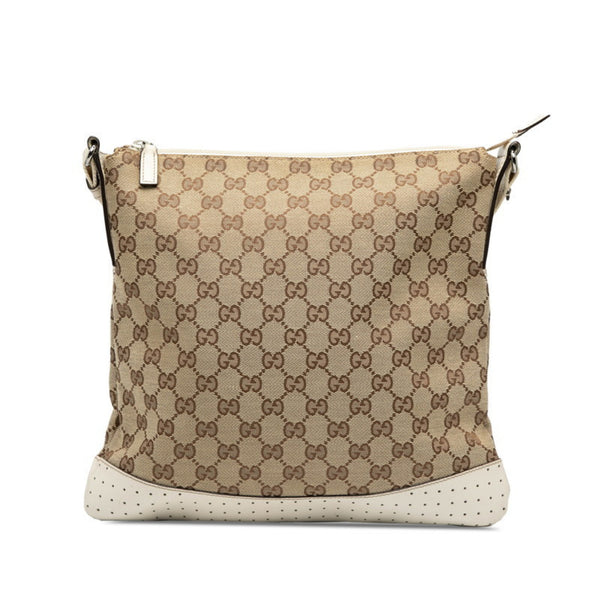 Gucci GG Canvas Shoulder Bag 145857 Beige Ivory Leather Women\'s GUCCI