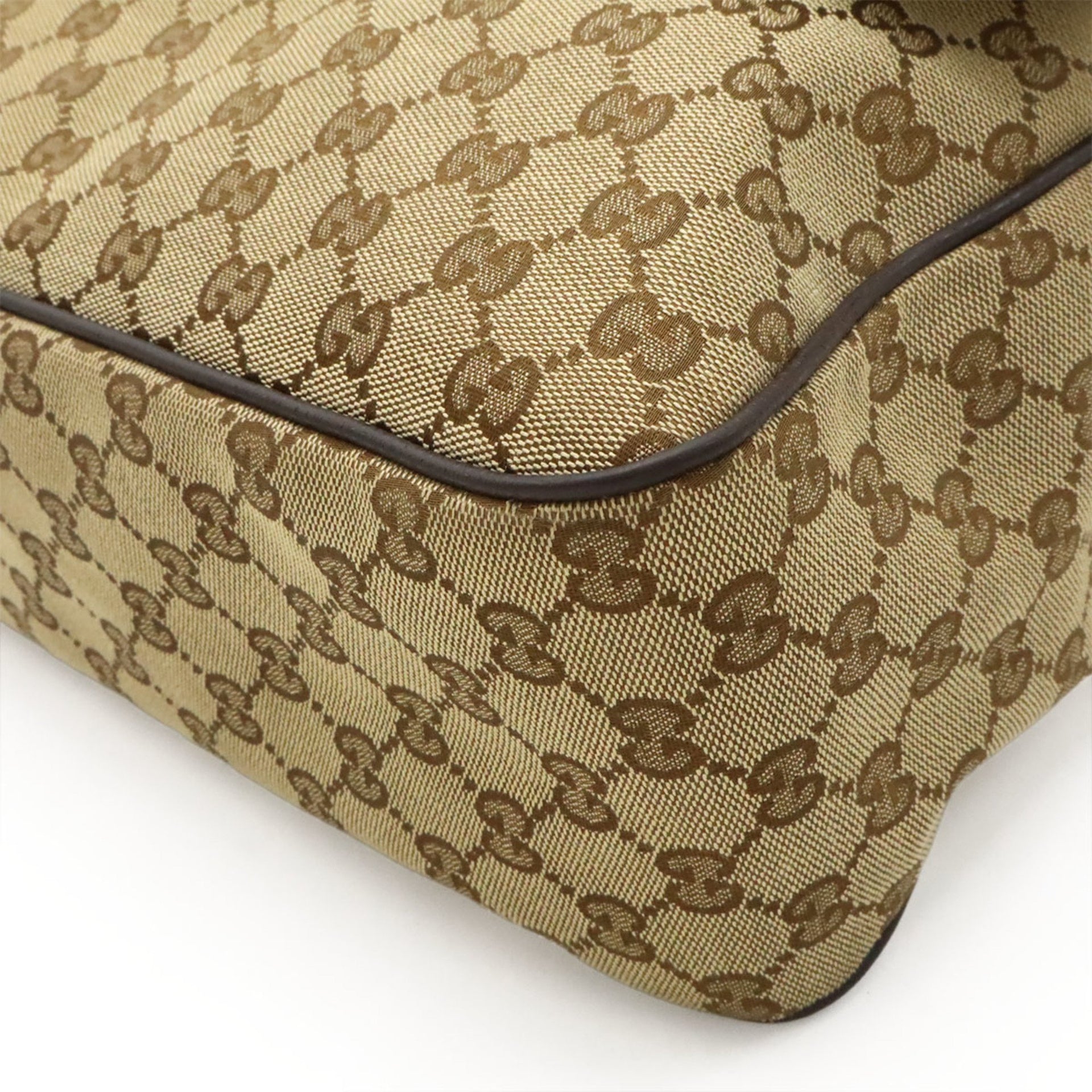 GUCCI GG Canvas Shoulder Bag, Khaki Beige and Dark Brown, 233052