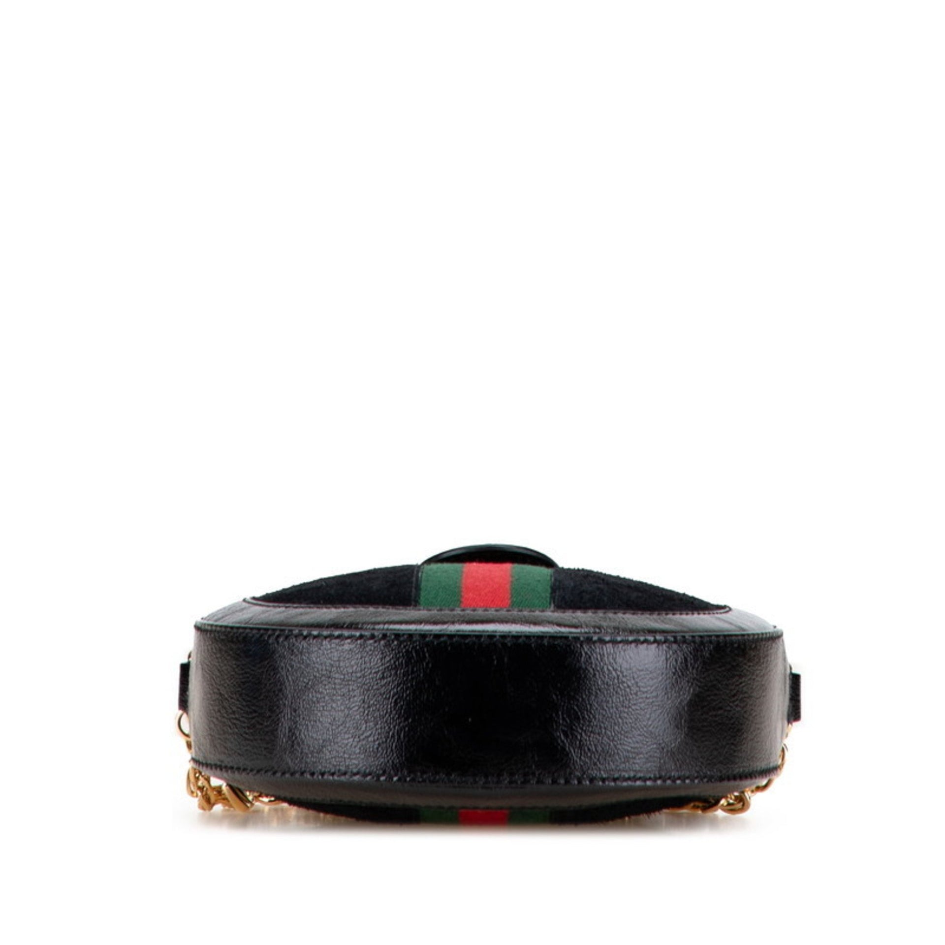 Gucci Ophidia Mini Round Chain Shoulder Bag 550618 in Black Patent Leather and Suede for Women