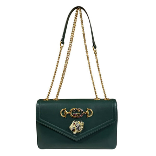 Gucci Raja Shoulder Bag, Leather, 537241, Green, Women\'s, GUCCI Double Chain