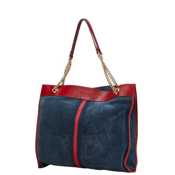 Gucci Sherry Line Raja Tiger Head Chain Tote Bag/Shoulder Bag 537219 Navy Red Leather Suede Women\'s GUCCI