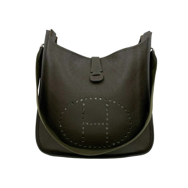 □H Stamped HERMES Evelyn 3 GM Taurillon Clemence Leather Shoulder Bag/Pochette/Sacoche Khaki 610-7