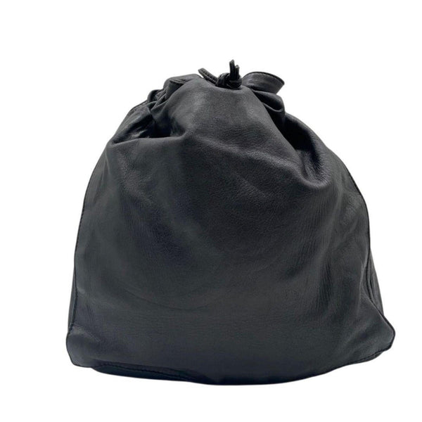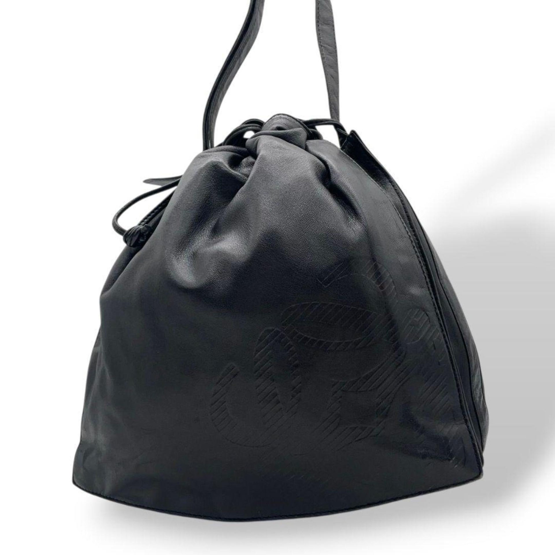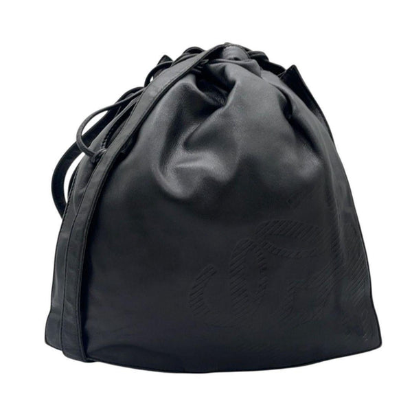 LOEWE Anagram Shoulder Bag, Drawstring, One-Shoulder, Black Leather, Gold Hardware, Logo Plate, Crossbody, A6