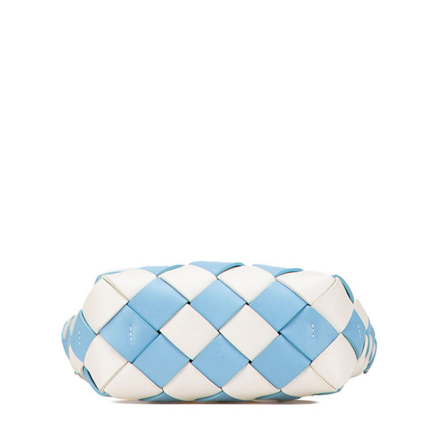 LOEWE Anagram Woven Basket Handbag/Shoulder Bag, 2-Way, Light Blue and White Calfskin Leather, Women\'s