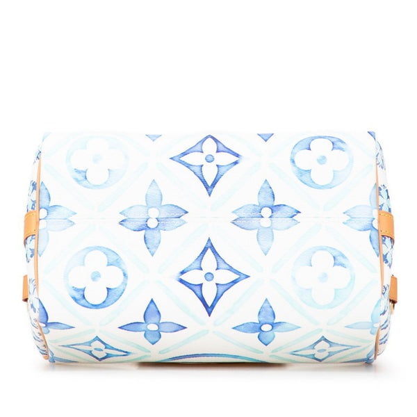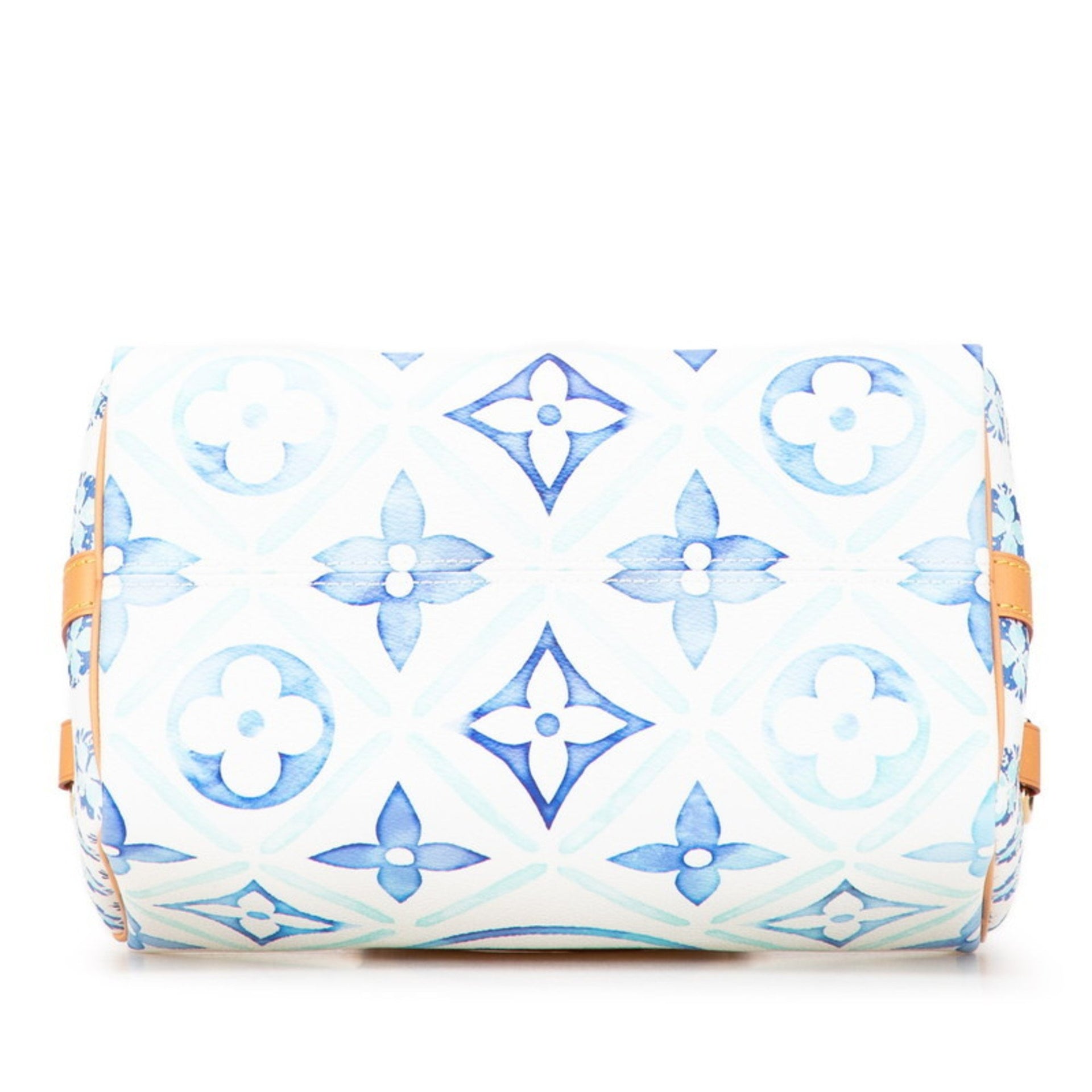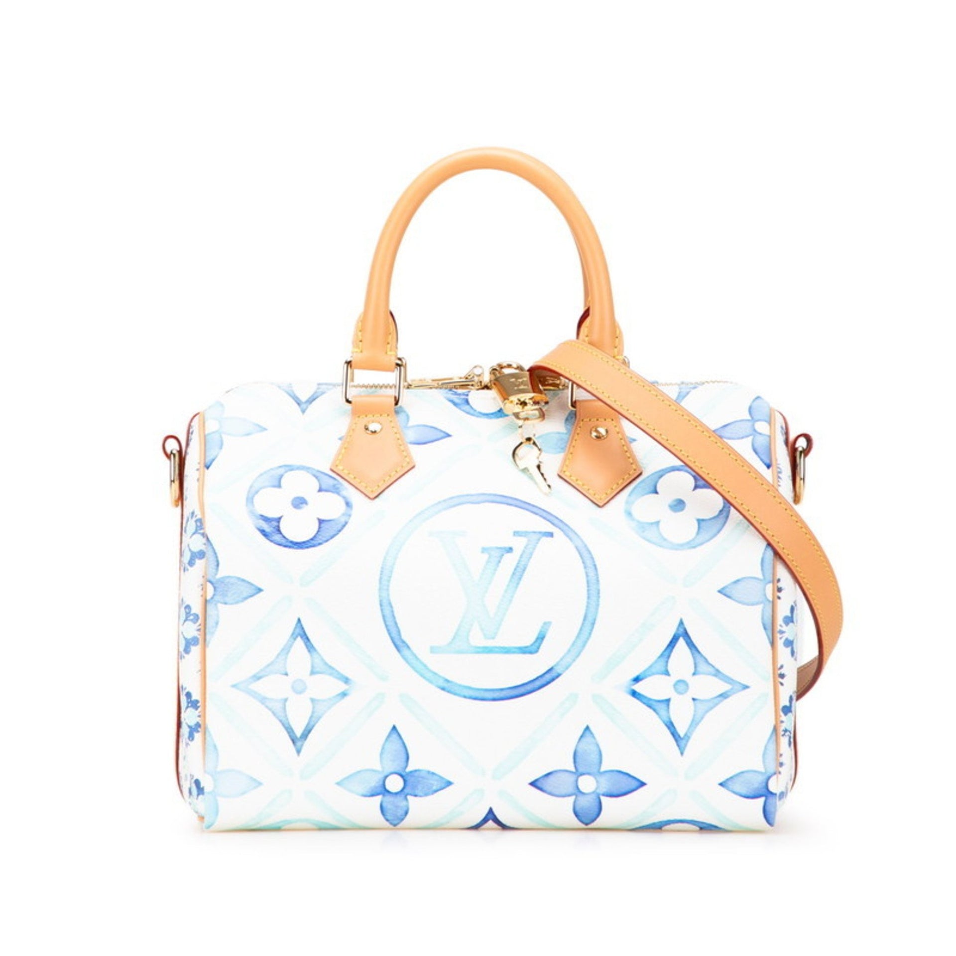 Louis Vuitton Monogram Tile Speedy Bandouliere 25 Handbag/Shoulder Bag, 2-Way, M11264, White with Lagoon Blue Leather, Women\'s, LOUIS VUITTON