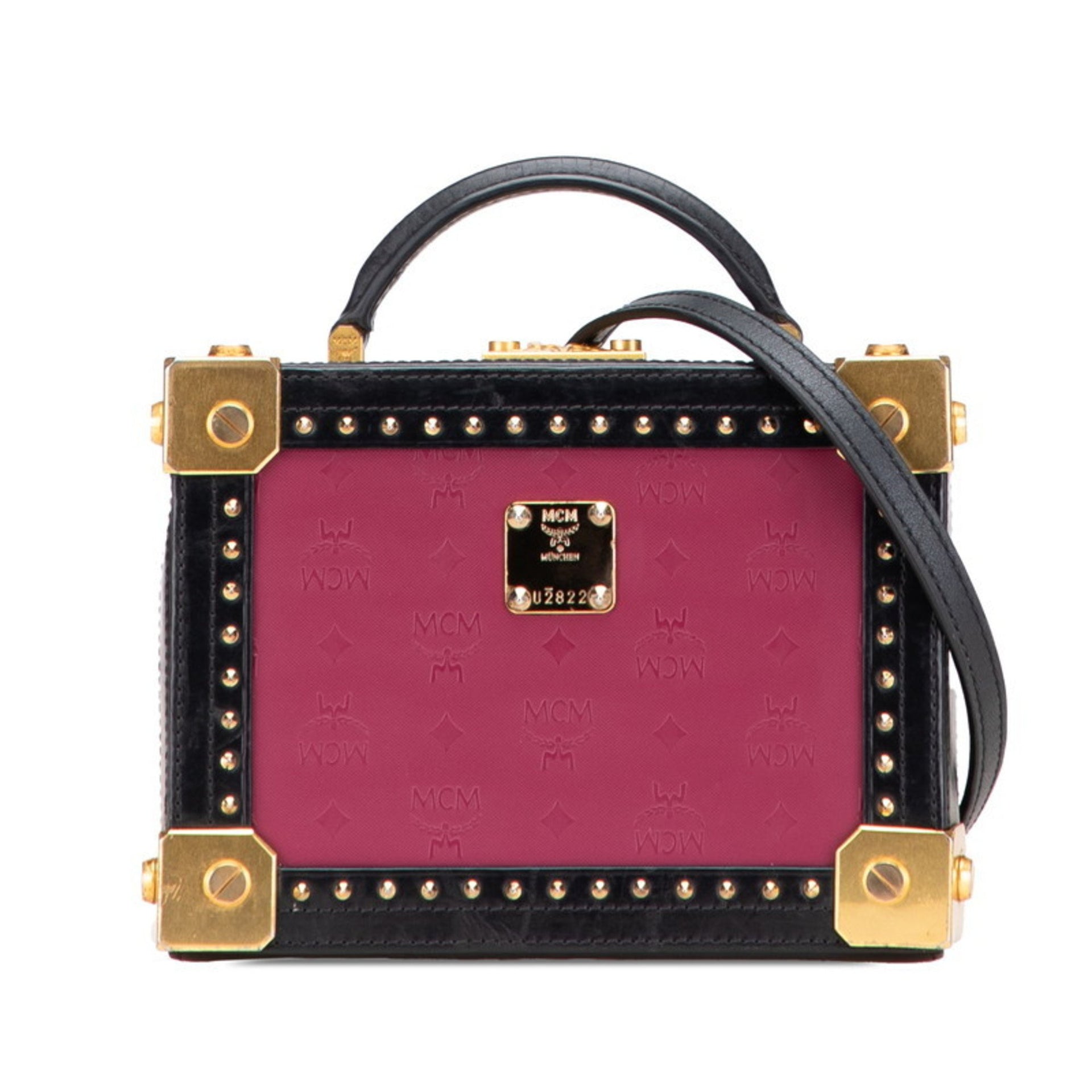 MCM Visetos Logogram Trunk Bag, 2-Way Shoulder Bag in Purple and Black Leather, Women\'s