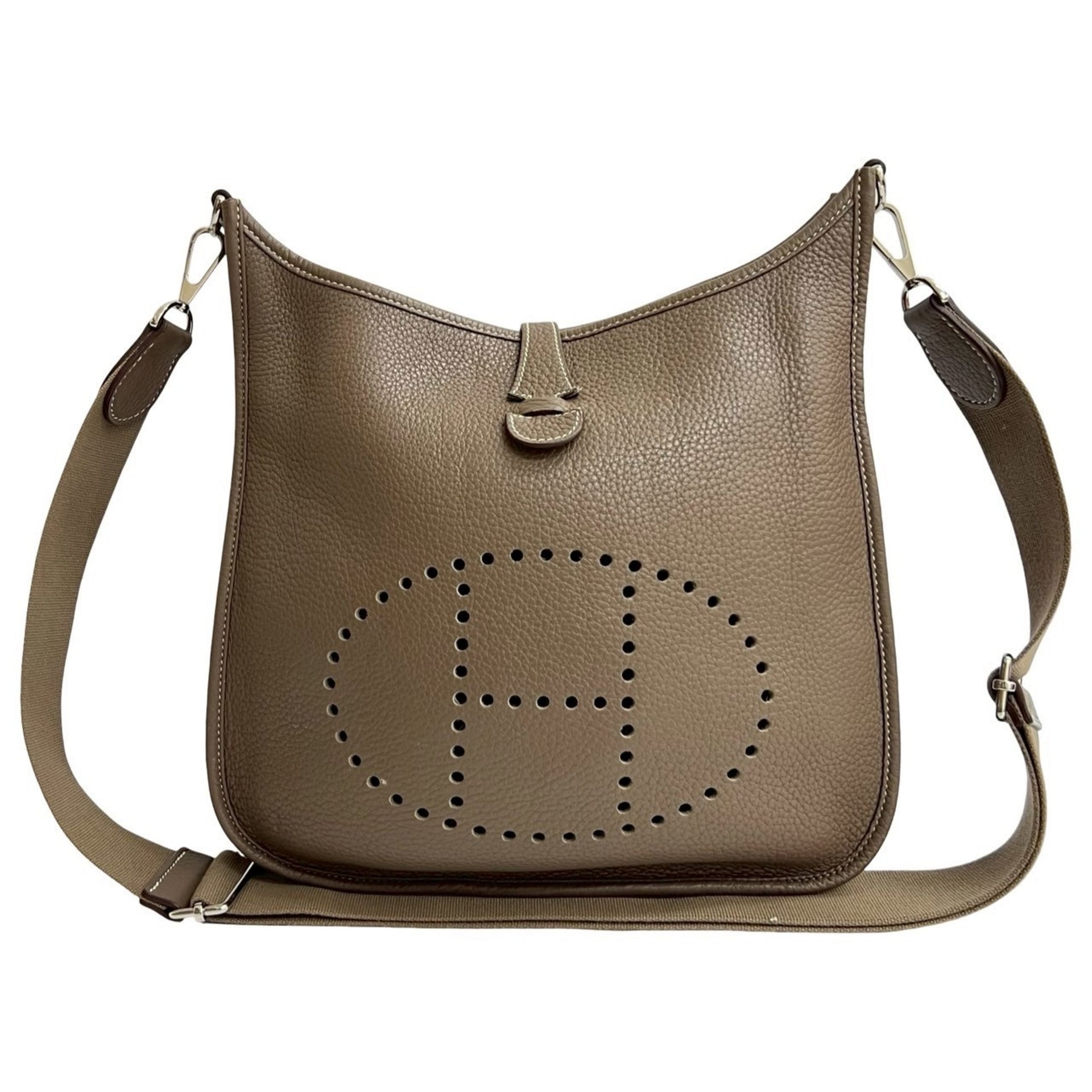 □N HERMES Evelyn 3 Taurillon Clemence Leather Shoulder Bag/Pochette/Sacoche/Etoupe 18104