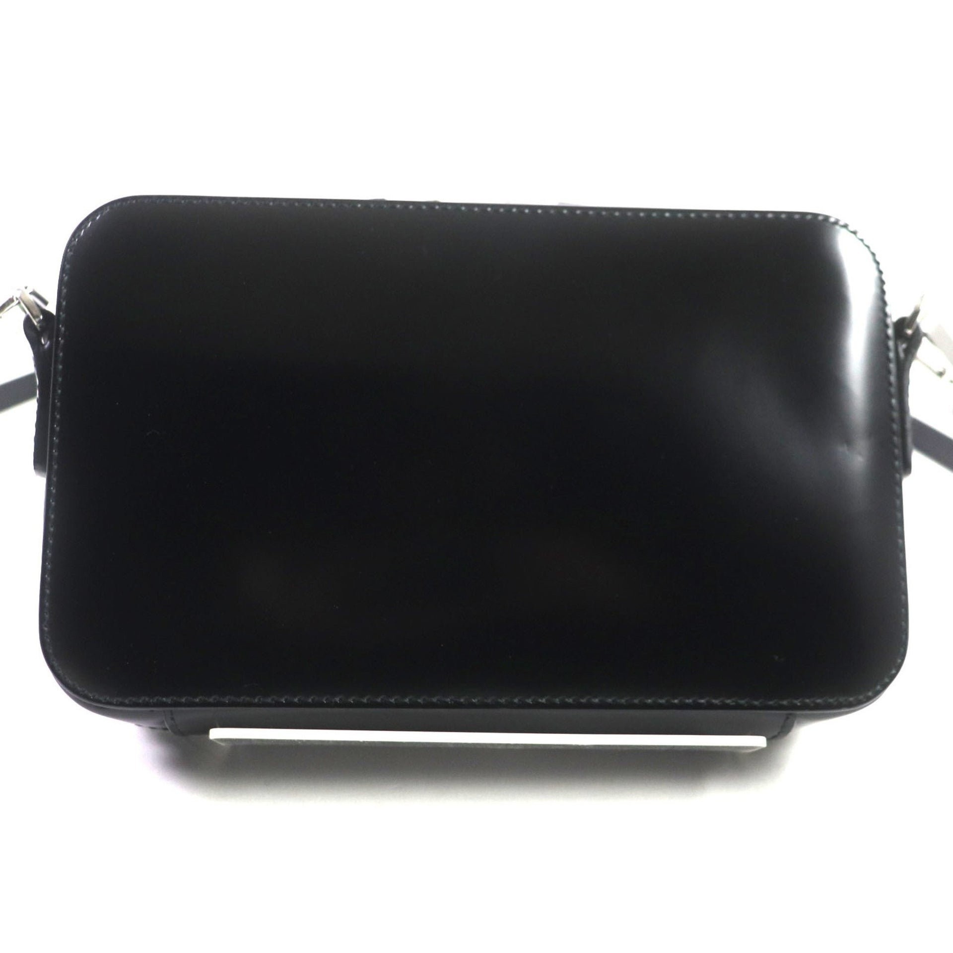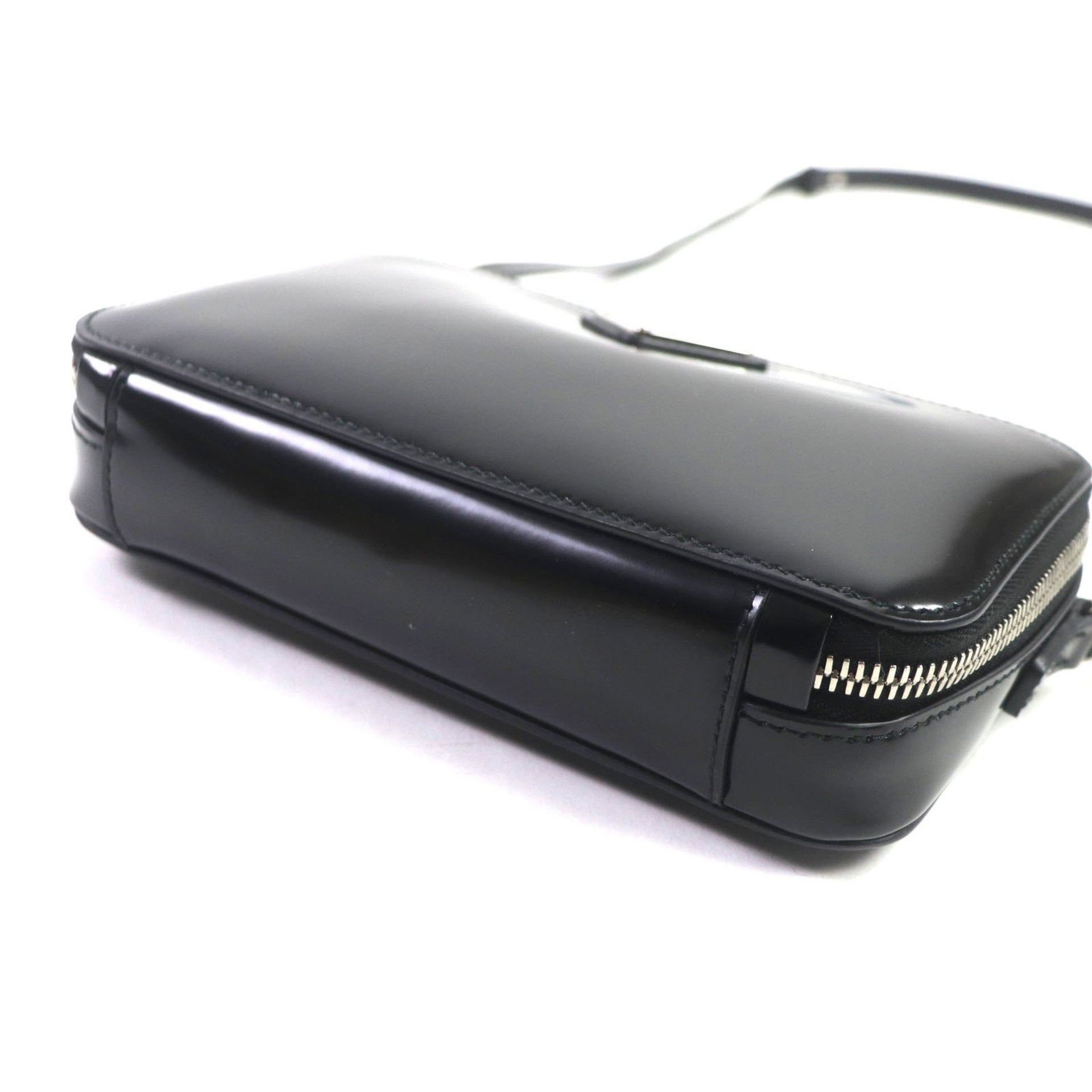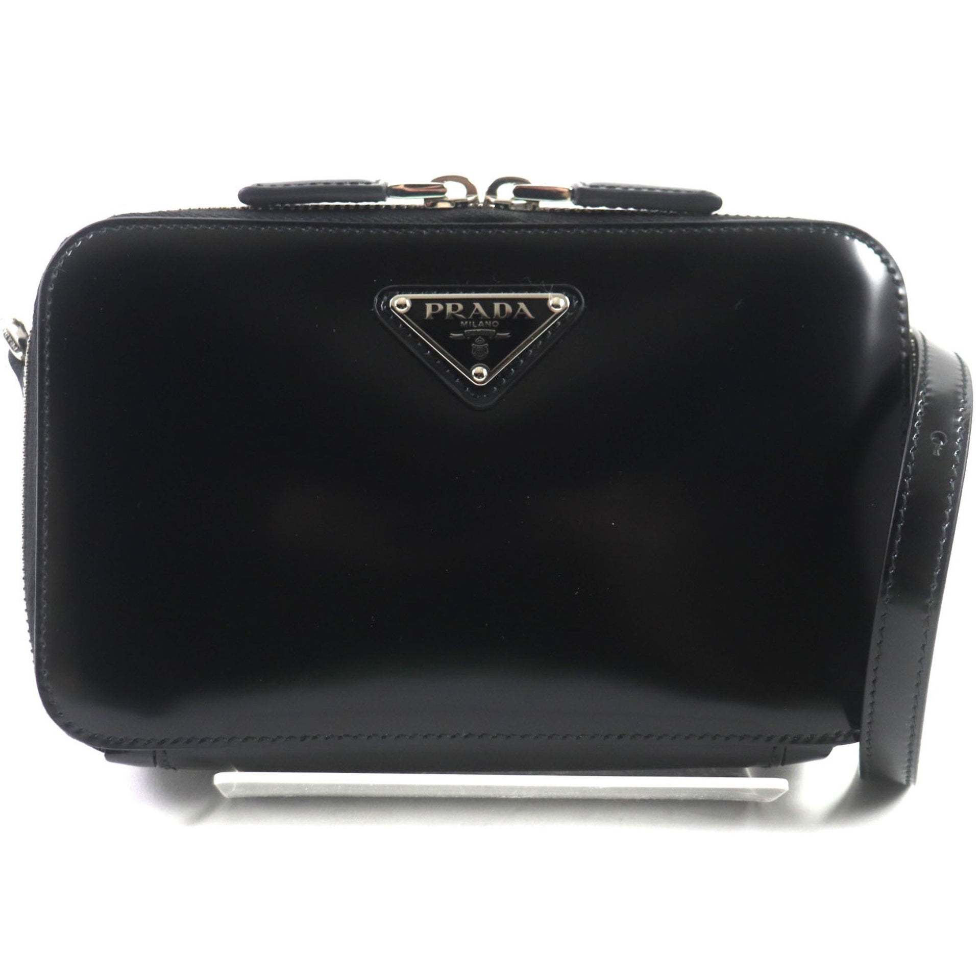 PRADA 2VH173 Brick Brushed Leather Triangle Logo Shoulder Bag, Black, Made in Italy, Men\'s