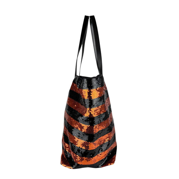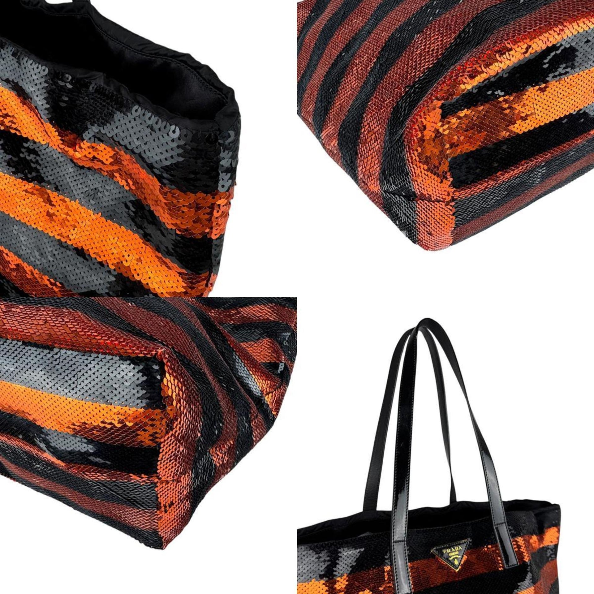 Prada Shoulder Bag Tote Sequin Patent Leather Black Orange Women\'s Z7219